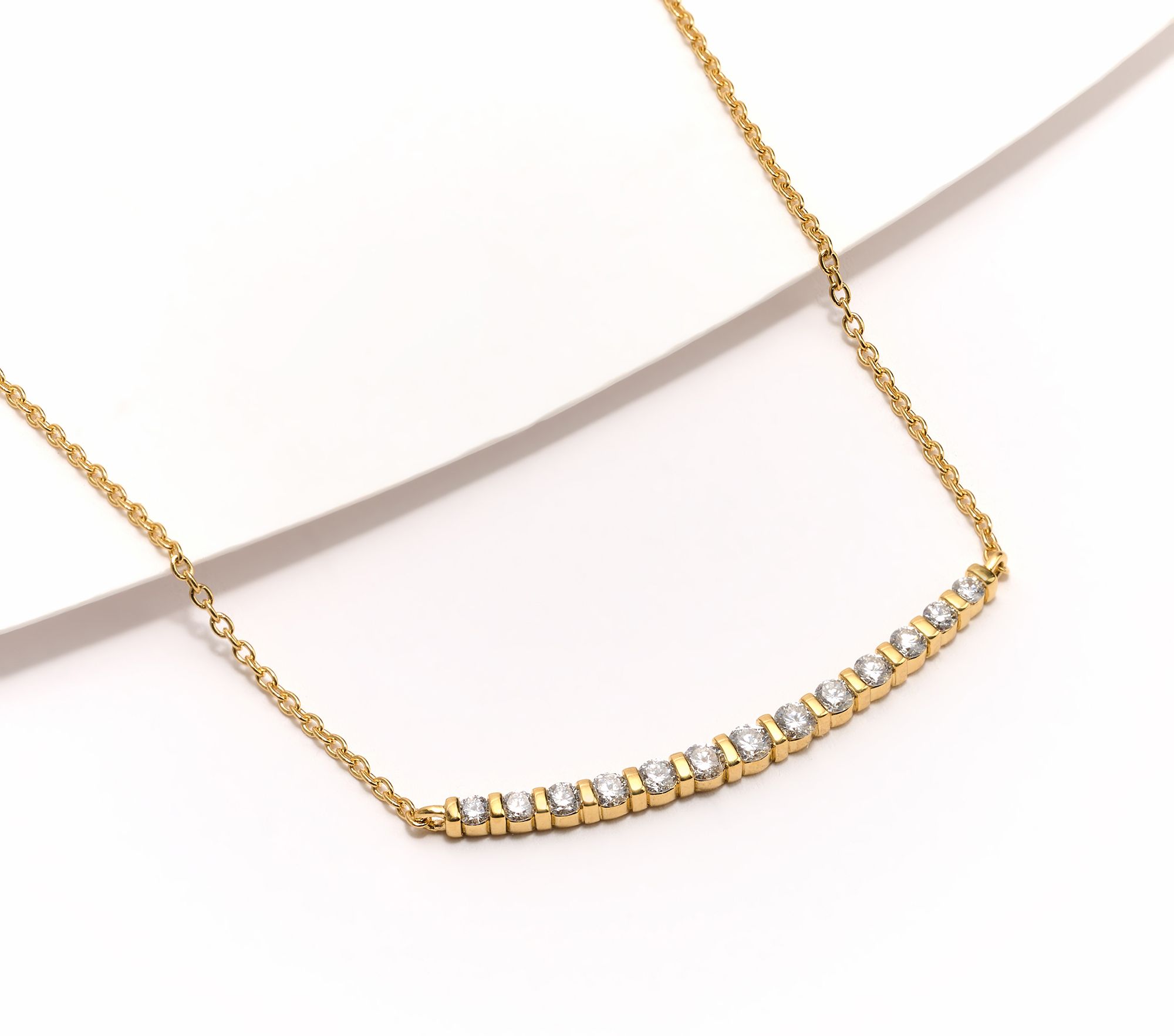Now unwrapping: mega-watt smiles! A gift of this delightful lab-grown diamond necklace -- a graduated, smile-shaped design -- will have her sparkling in more ways than one. The adjustable cable link chain lets her get the fit just the right for any outfit or event. From Fire Light Lab Grown Diamond Jewelry.