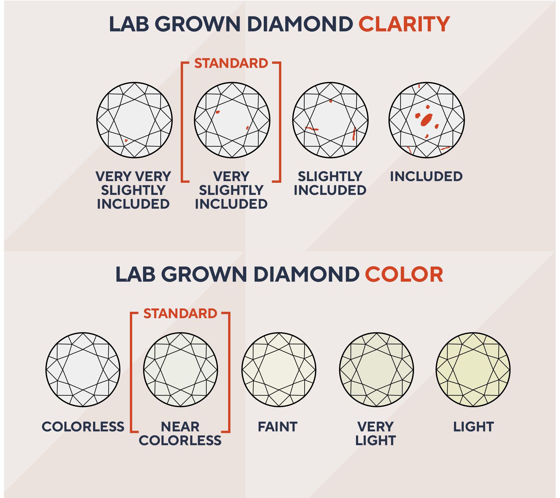 Lab-grown diamonds meet standard GIA requirements: Very Slightly Included clarity and Near Colorless color