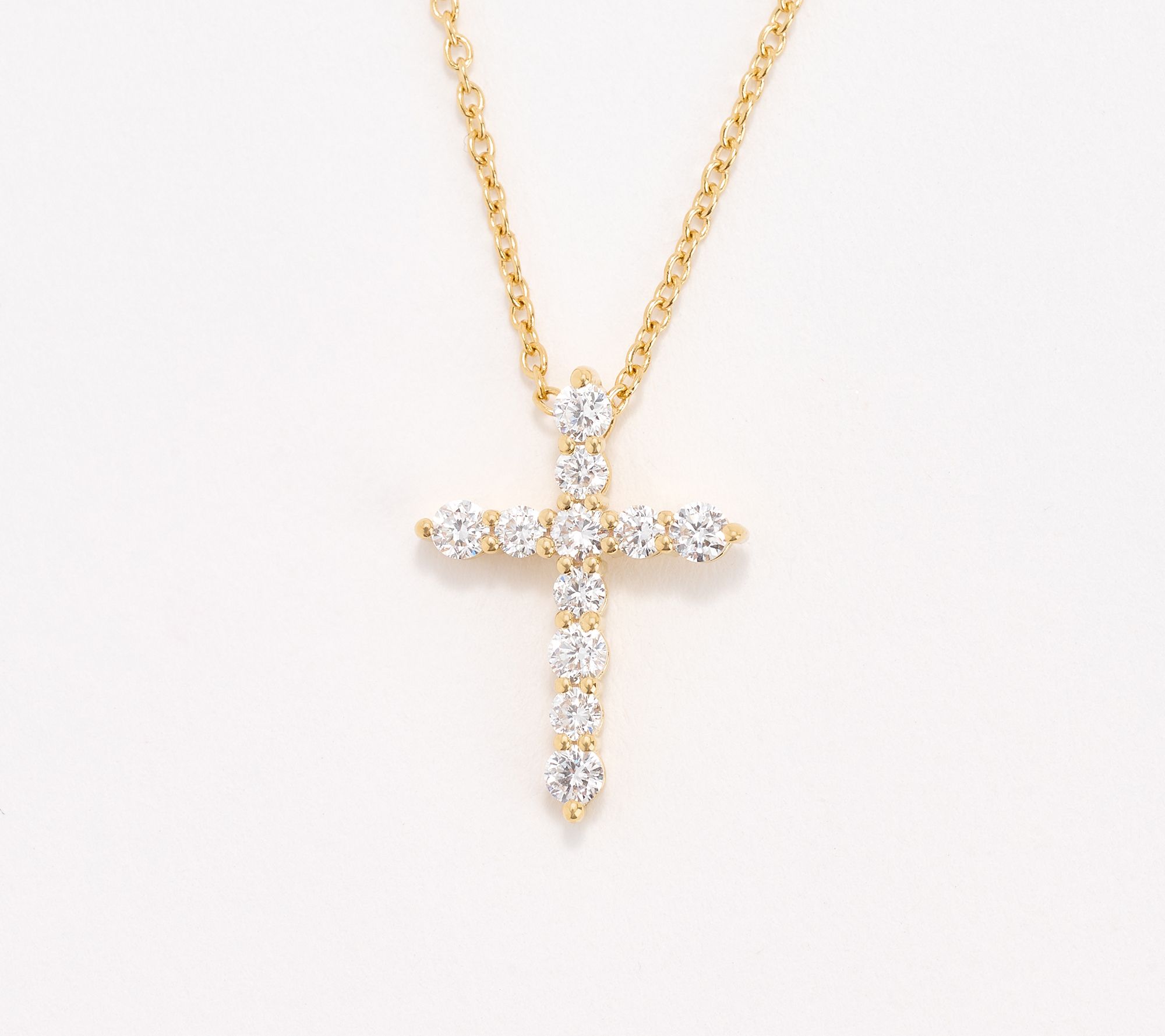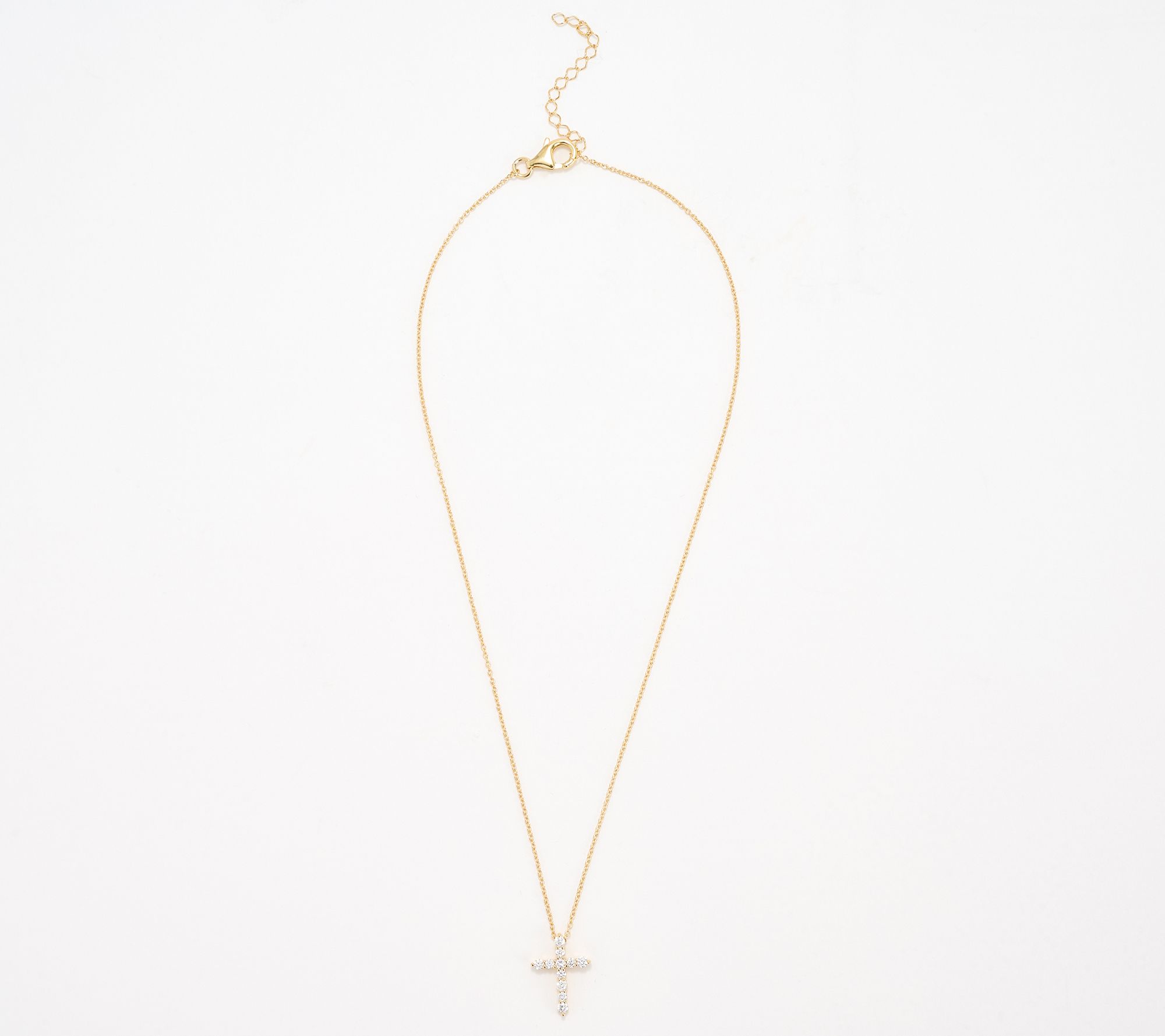 Whether you're dressing for Sunday brunch or a quiet moment of reflection, this cross pendant shines with a line-up of glistening lab-grown diamonds for meaningful sparkle. The adjustable chain makes styling simple, whether worn solo or layered for extra impact. From Fire Light Lab Grown Diamond Jewelry.