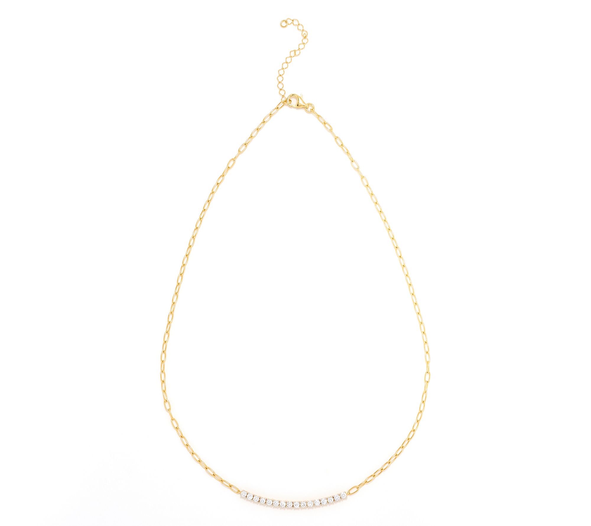 Sixteen round, prong-set lab-grown diamonds; paperclip chain link design; lab-grown diamond area measures approximately 2"W