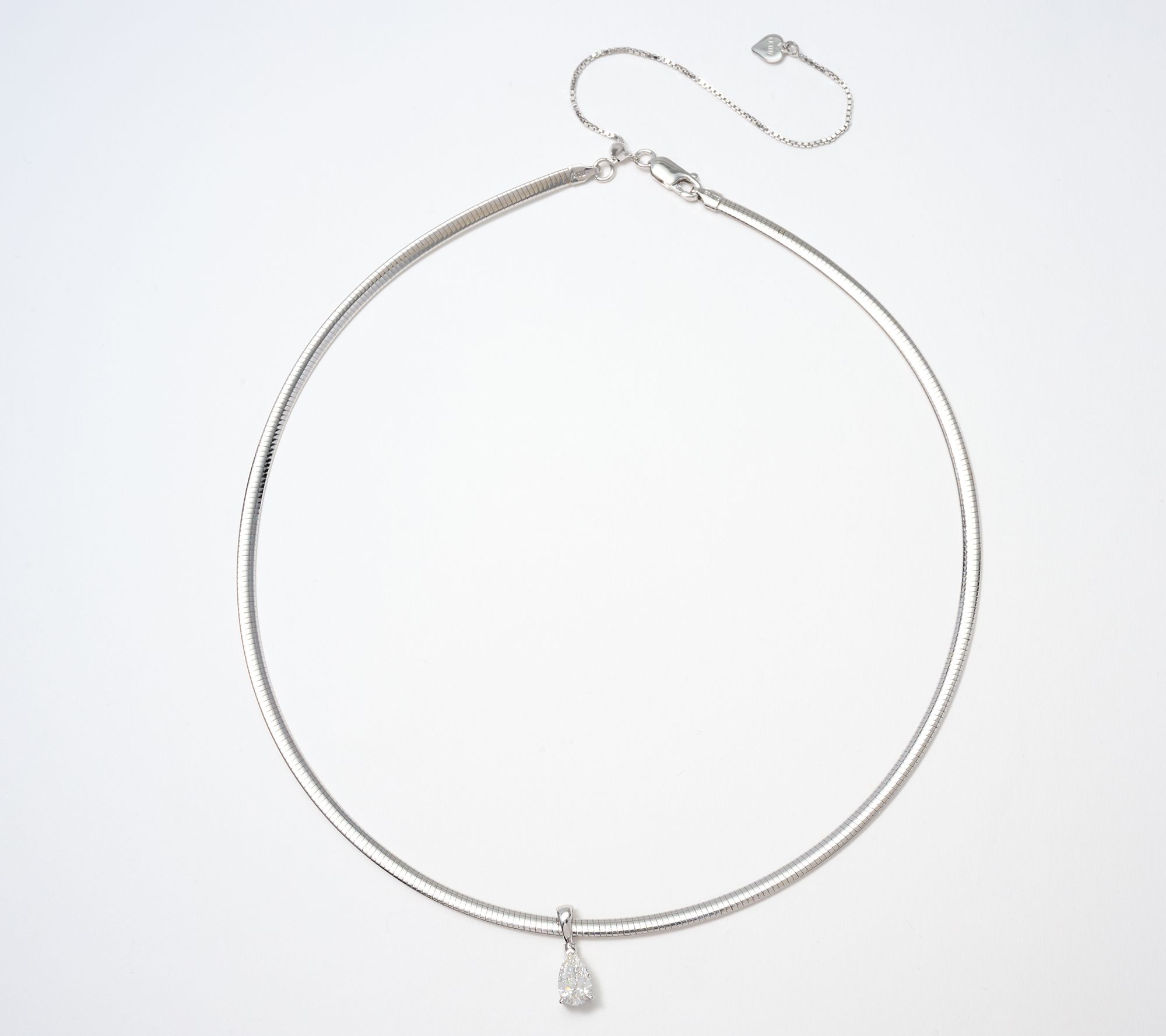 Make your world a brighter place -- with this pear lab-grown diamond necklace. From moonlit dinners to milestone events to your day job, you'll love the rich look of its substantial omega chain, polished-to-a-T presentation, and the modern sparkle of the full-cut lab-grown diamond at its anchor. A meaningful self-gift (or a thoughtful gift-gift) to cherish now and forever. From Fire Light Lab Grown Diamond Jewelry.
