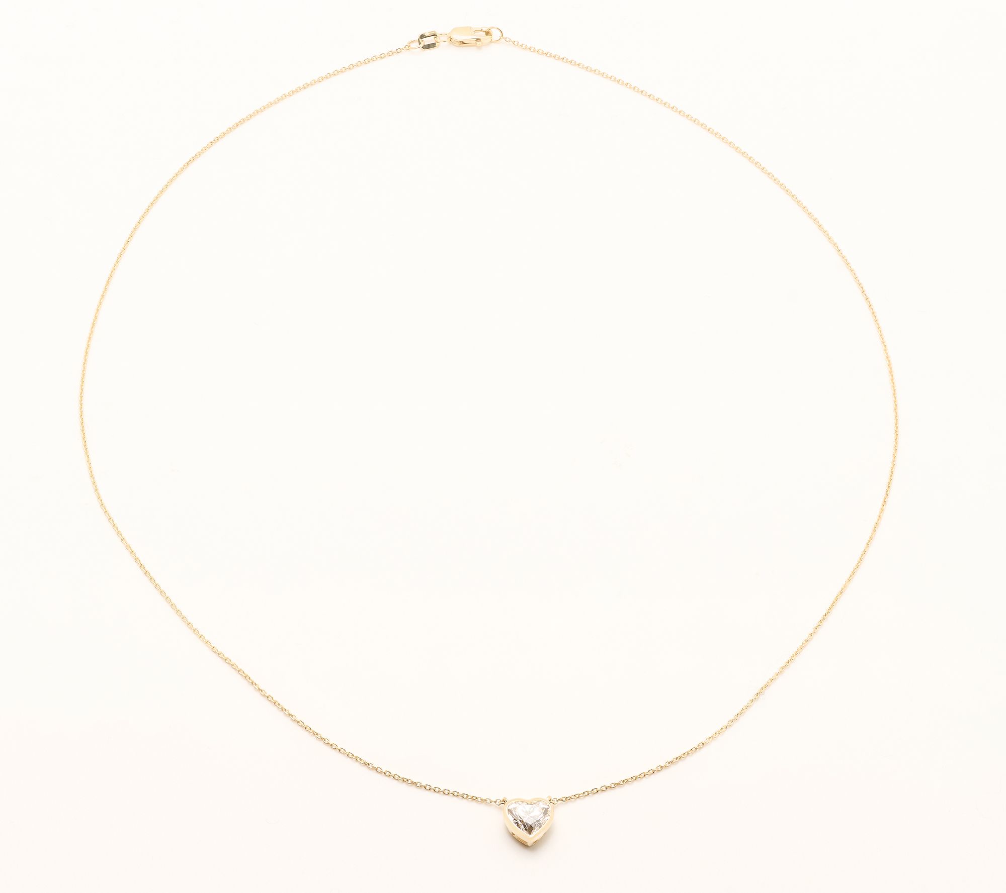 Heart-shaped, bezel-set lab-grown diamond pendant; oval link chain