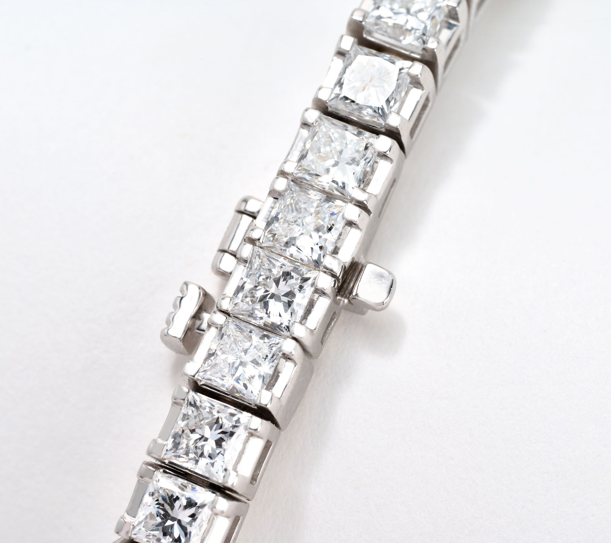 Princess-cut lab-grown diamonds in prong-set tennis design