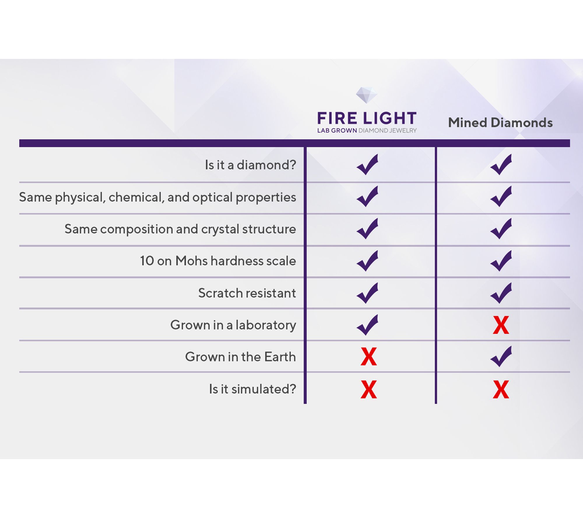 Lab-grown diamonds meet standard GIA requirements: Very Slightly Included clarity and Near Colorless color