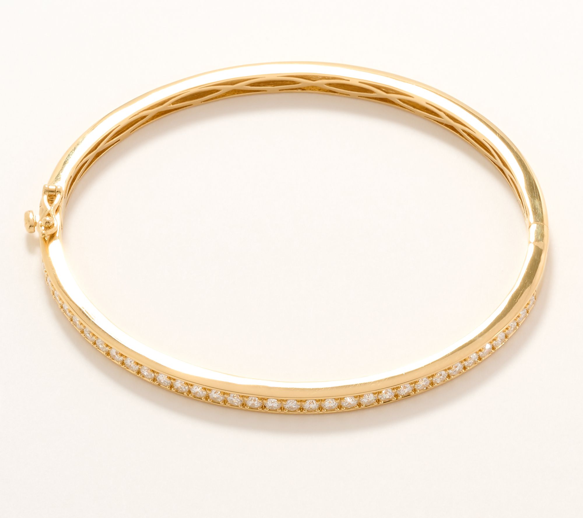 Round, full-cut lab-grown diamonds in tennis-style bangle design