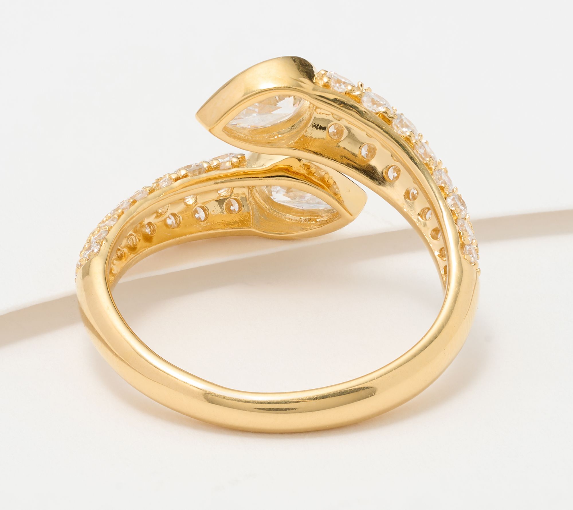 Bypass design; full-cut round and pear lab-grown diamonds