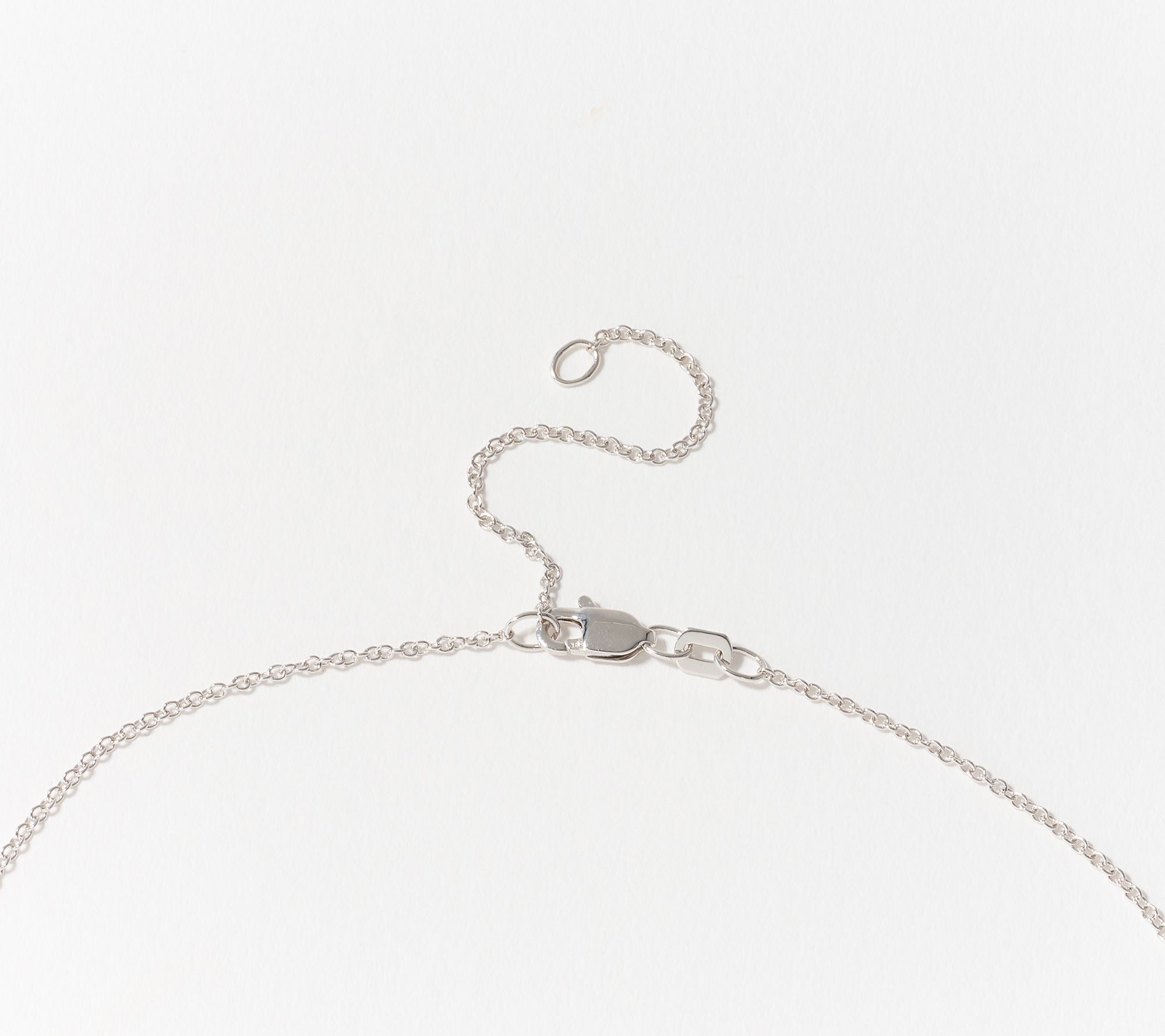 Approximate measurements: Pendant 1/2"L x 1/4"W x 1/4"H; Chain adjusts at 16"L or 18"L