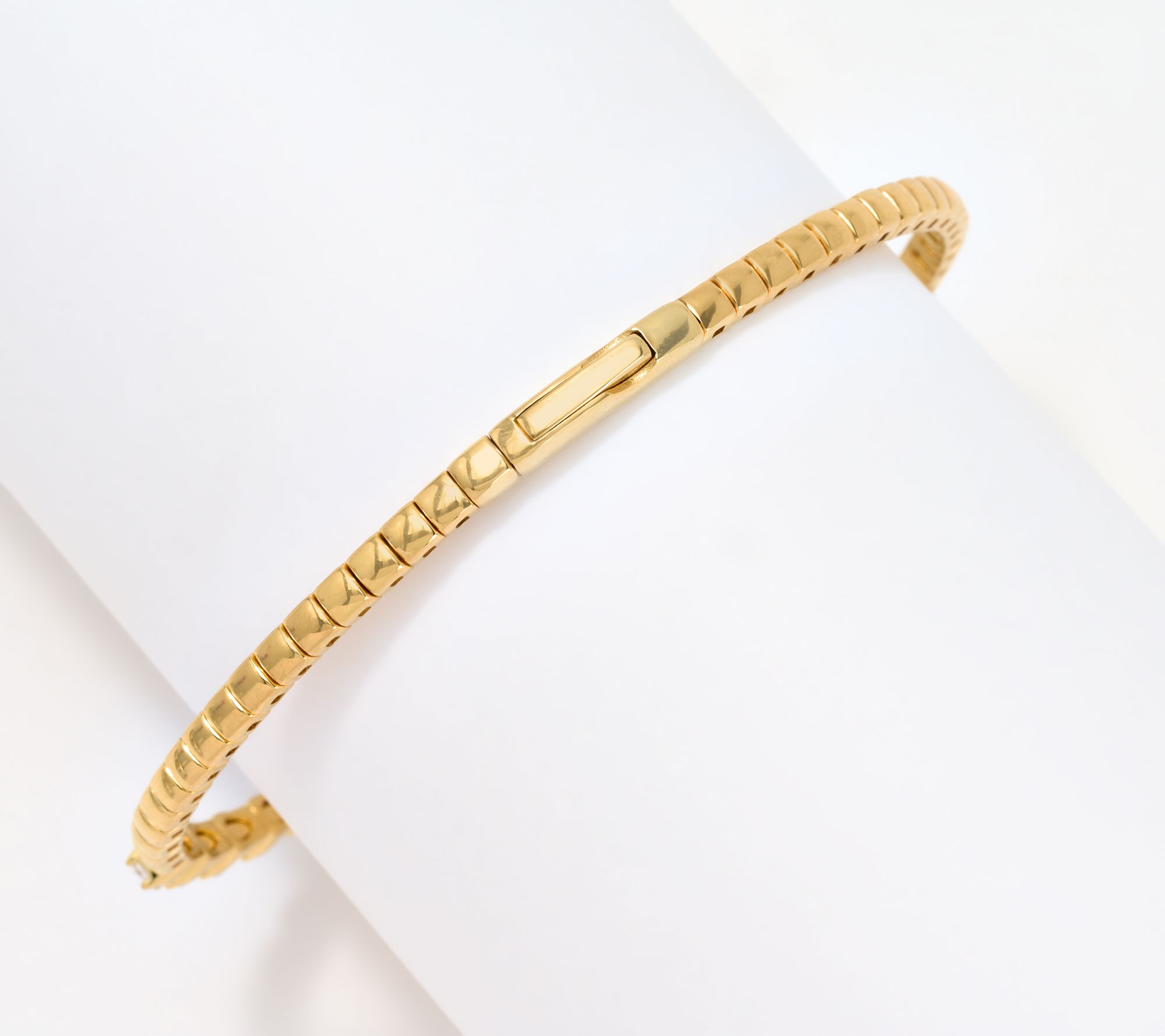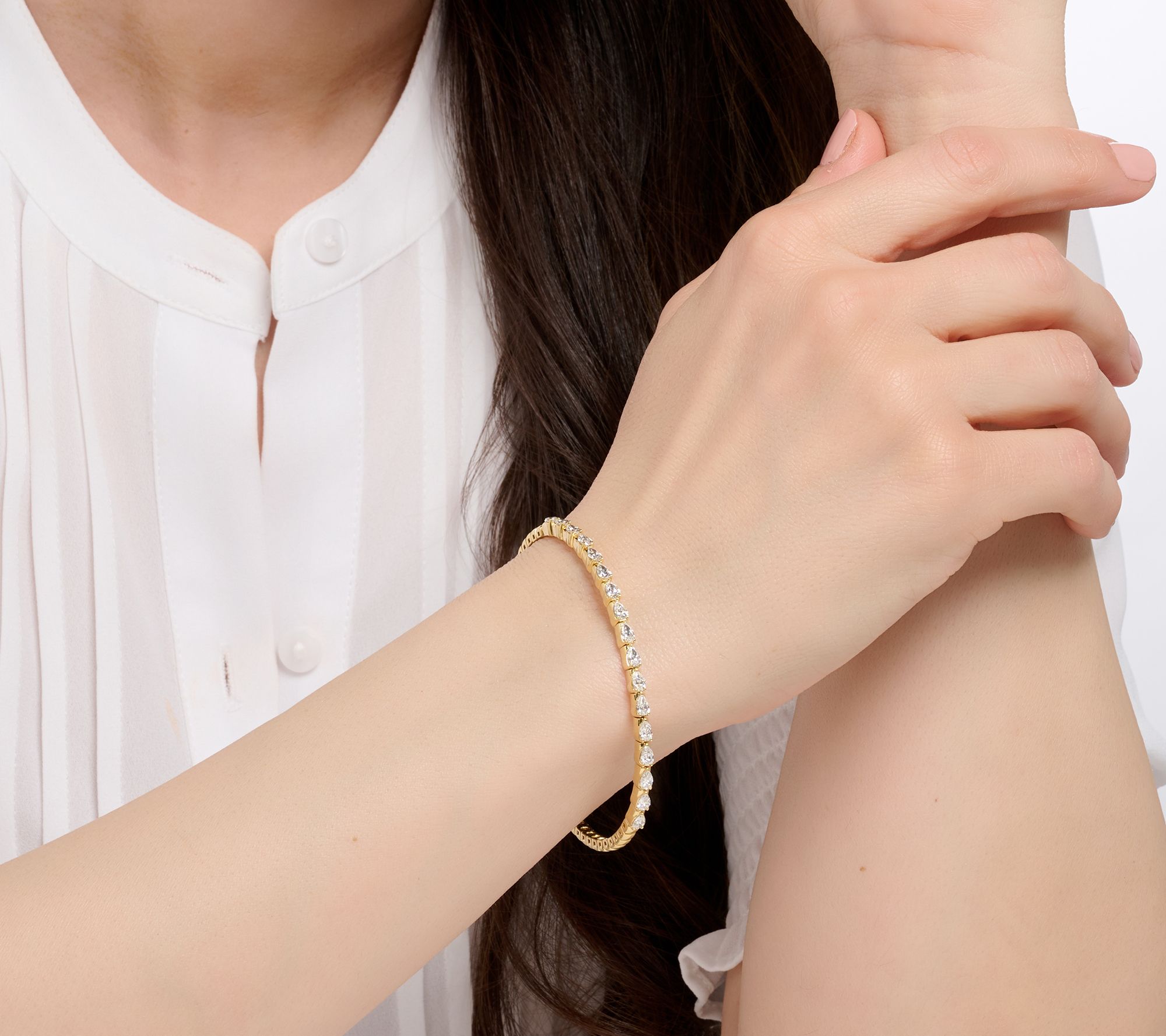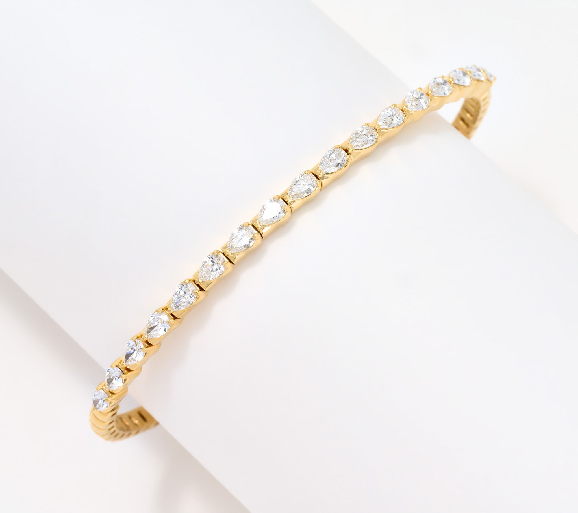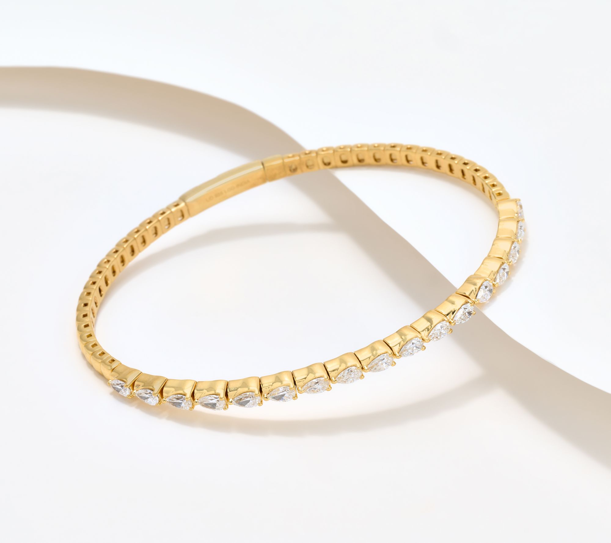 Take your accessory game to the next level with this flexible tennis bangle, crafted with a luxe line-up of pear-shaped lab-grown diamonds. Whether you're dressing up for a night out or adding sophistication to your everyday ensemble, this stunning piece elevates any outfit. From Fire Light Lab Grown Diamond Jewelry.
