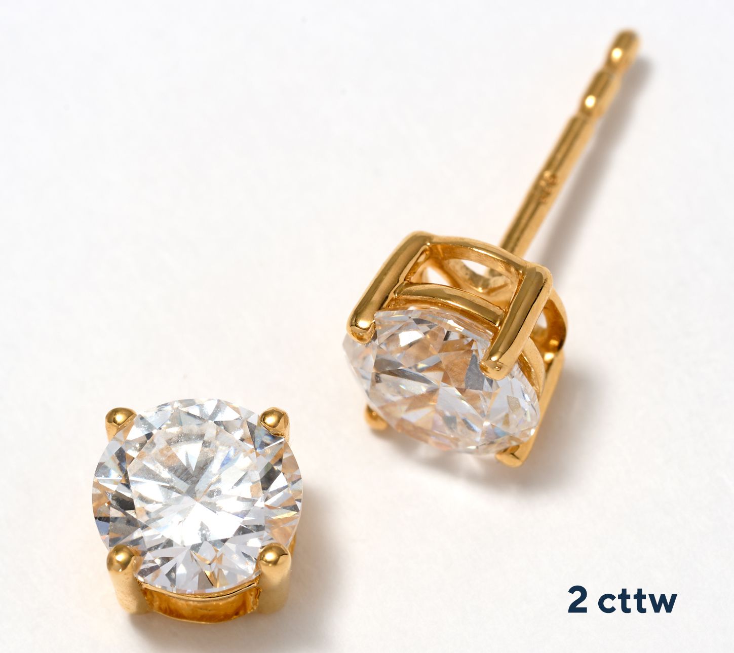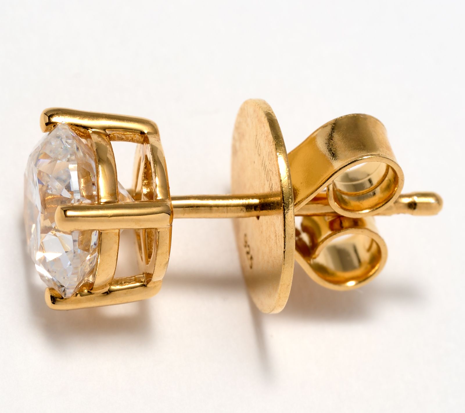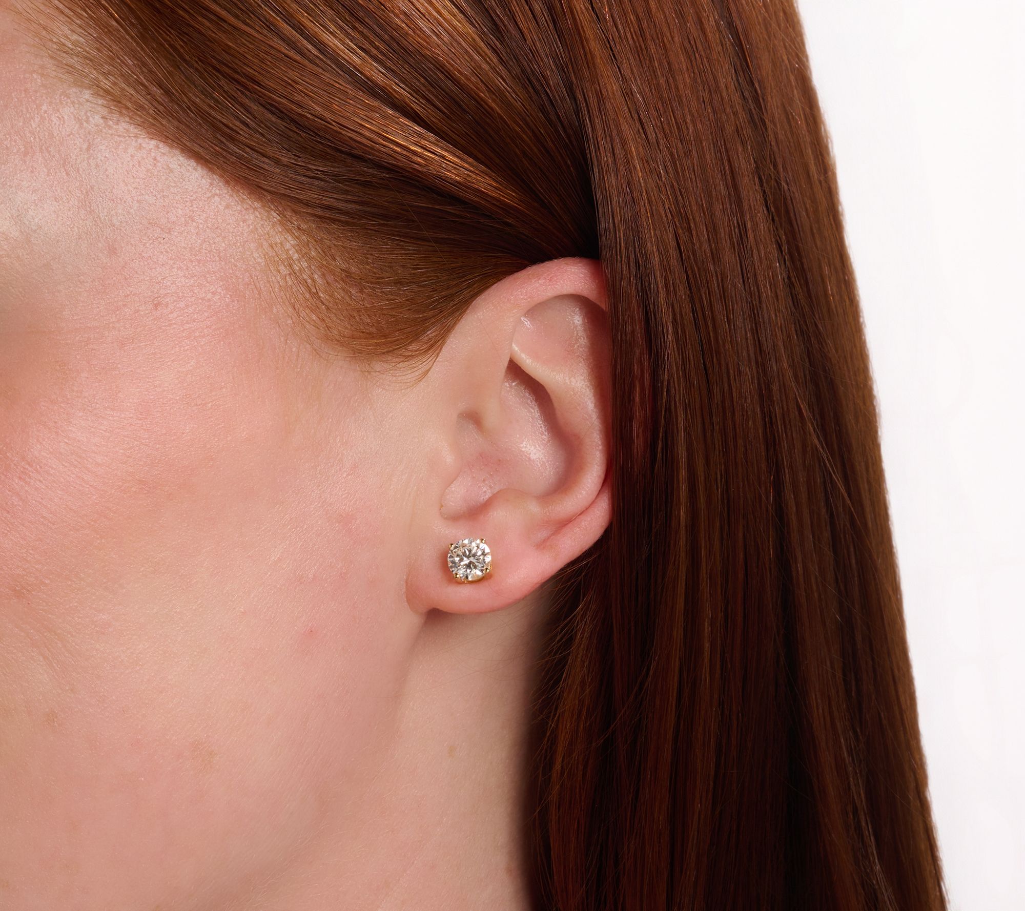 • Prong-set, full-cut round lab-grown diamond stud design; polished finish