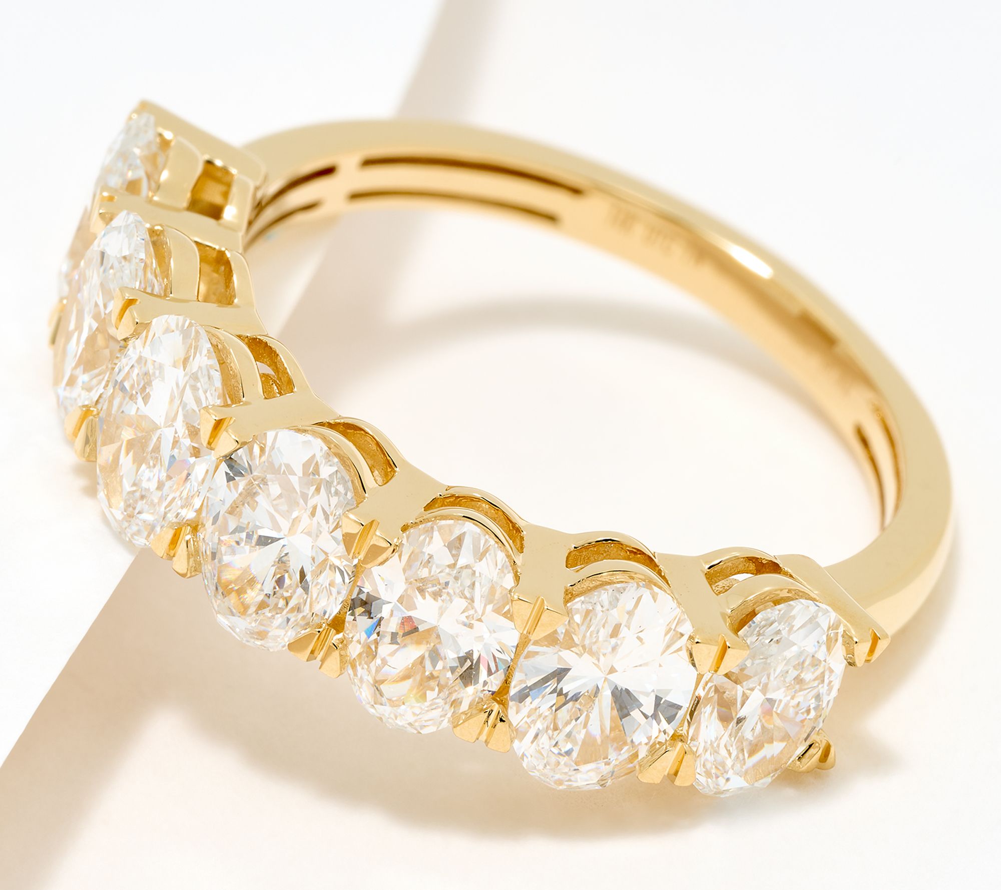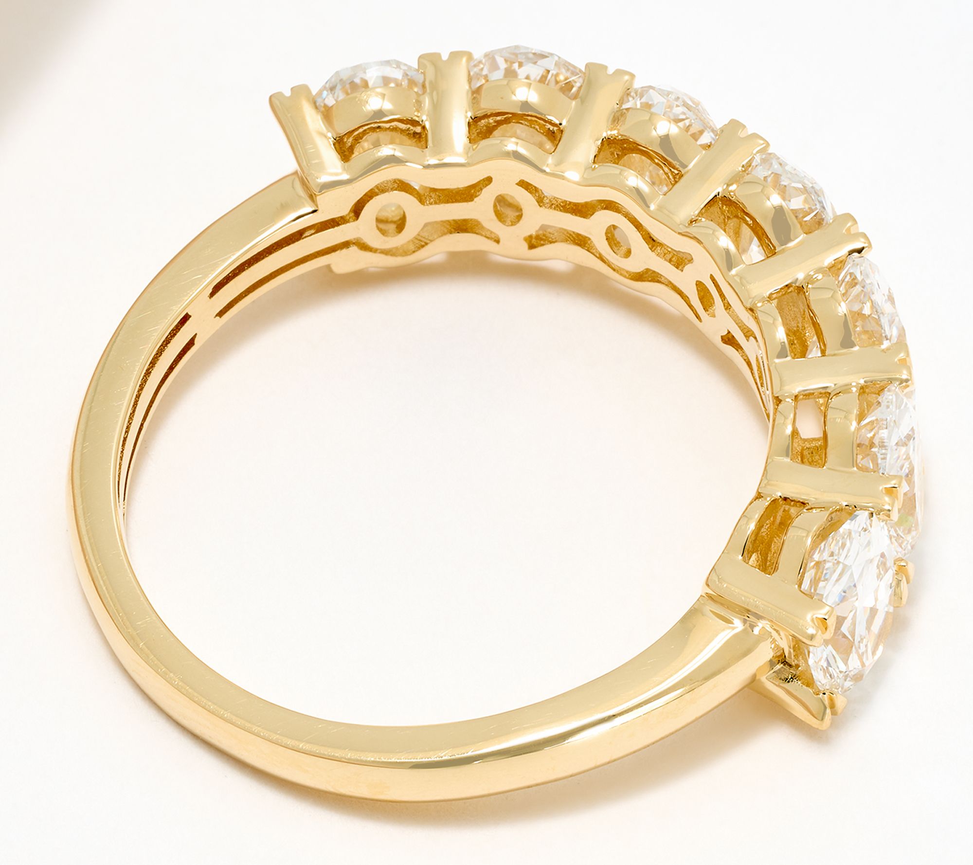 Sparkle with sophistication at any dinner party or special occasion wearing this radiant ring. Seven lab-grown diamonds line up across the top, capturing the light with every movement you make, making it the ideal accessory for those meaningful moments. From Fire Light Lab Grown Diamond Jewelry.