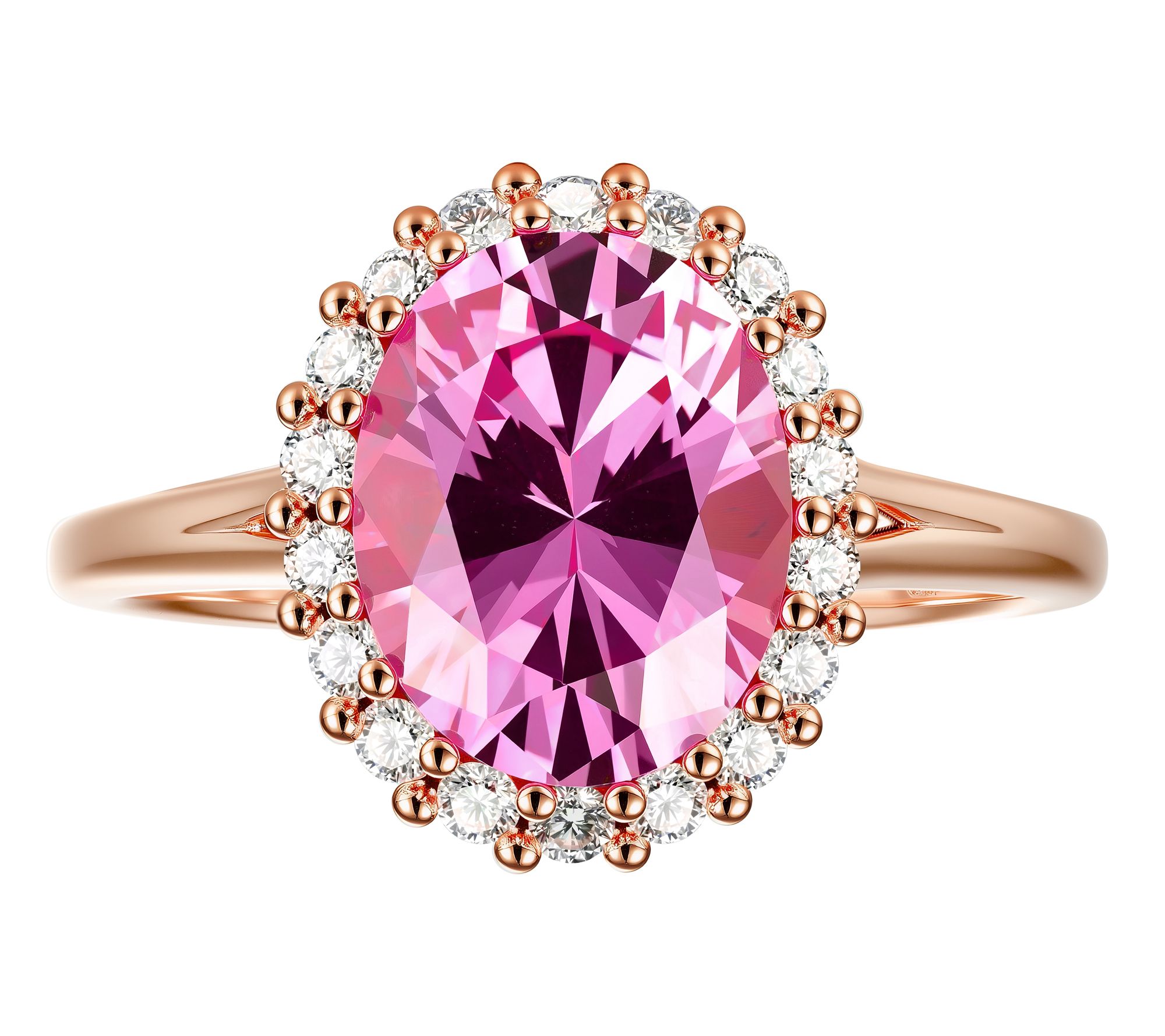 A dazzling halo of lab-grown diamonds frames a vibrant lab-grown blue or pink sapphire, making this ring a captivating choice for celebrations or everyday glamour. Crafted in your choice of rhodium-plated sterling silver or 14K rose gold-plated sterling silver, its sparkling accents lend effortless sophistication to any moment. From Fire Light Lab Grown Diamond Jewelry.
