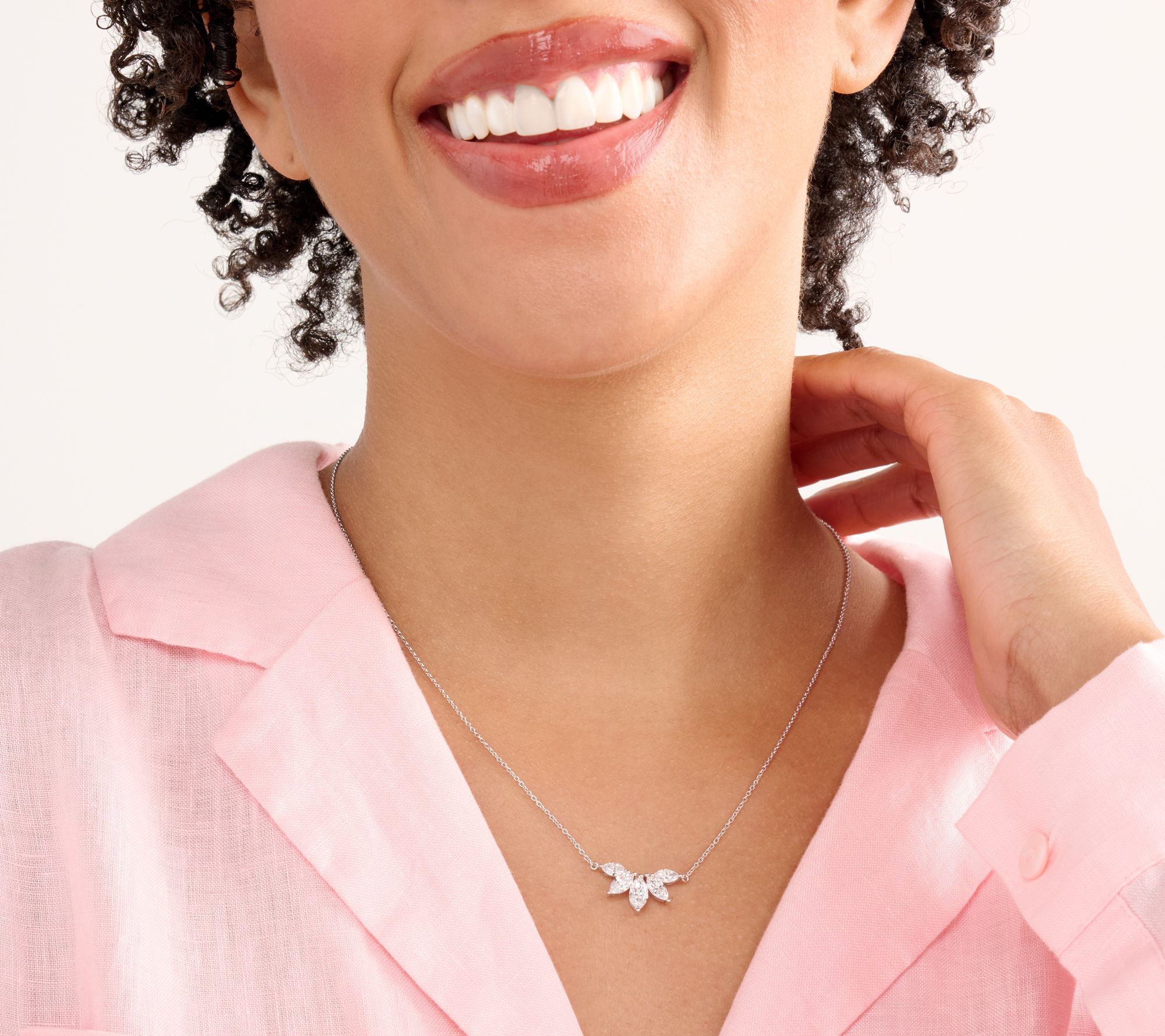 The fancy focal point of this stunning necklace is a cluster of marquise-cut lab-grown diamonds. Wear it when you want to spark a special occasion vibe, even if its just to dazzle during your daily grind. From Fire Light Lab Grown Diamond Jewelry.