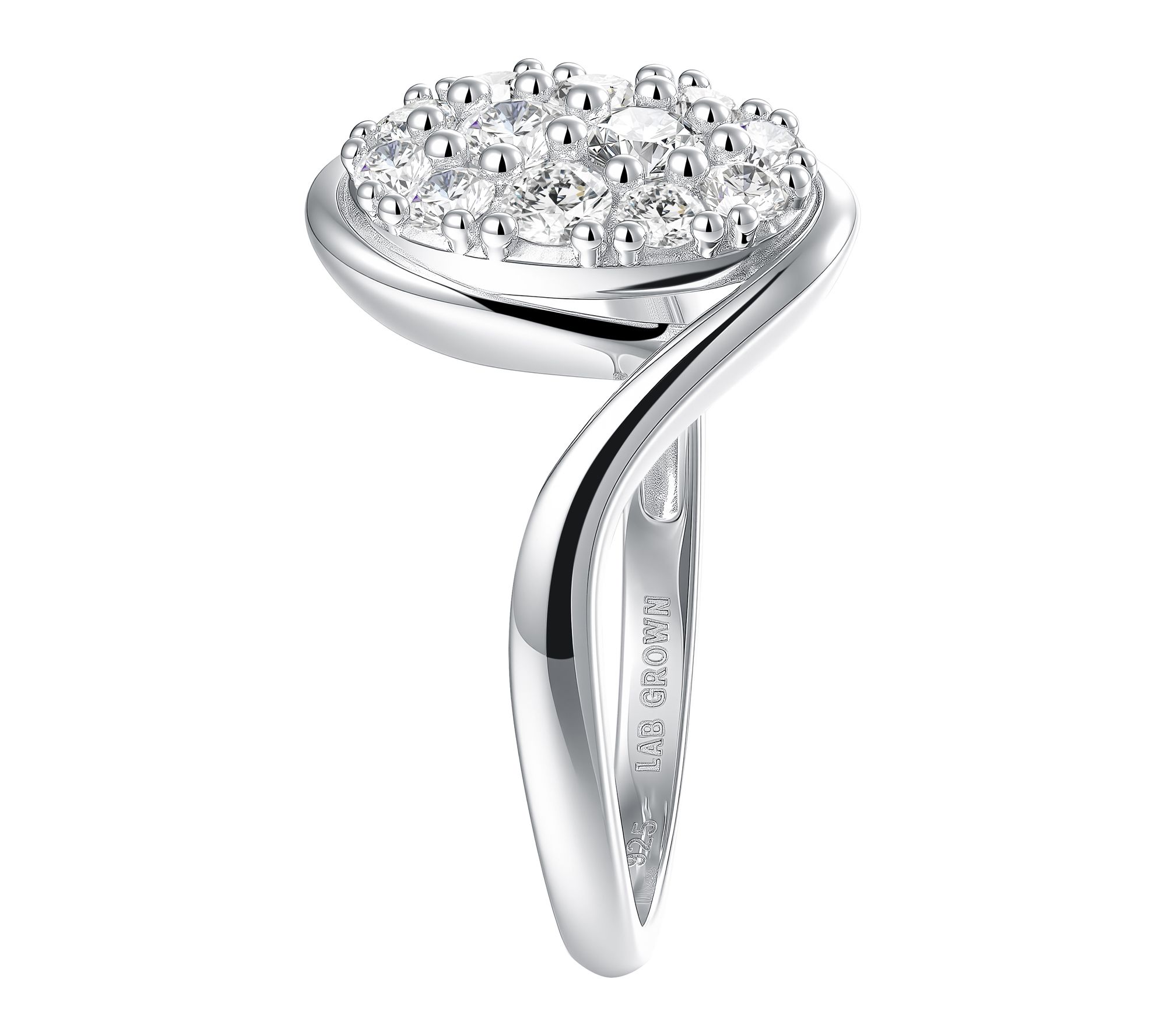 Whether you're marking a milestone or adding a little sparkle to your day, this ring brings modern elegance to every moment. The gently twisting bypass design cradles round-cut lab-grown diamonds in an oval silhouette, catching the light with every move. From Fire Light Lab Grown Diamond Jewelry.