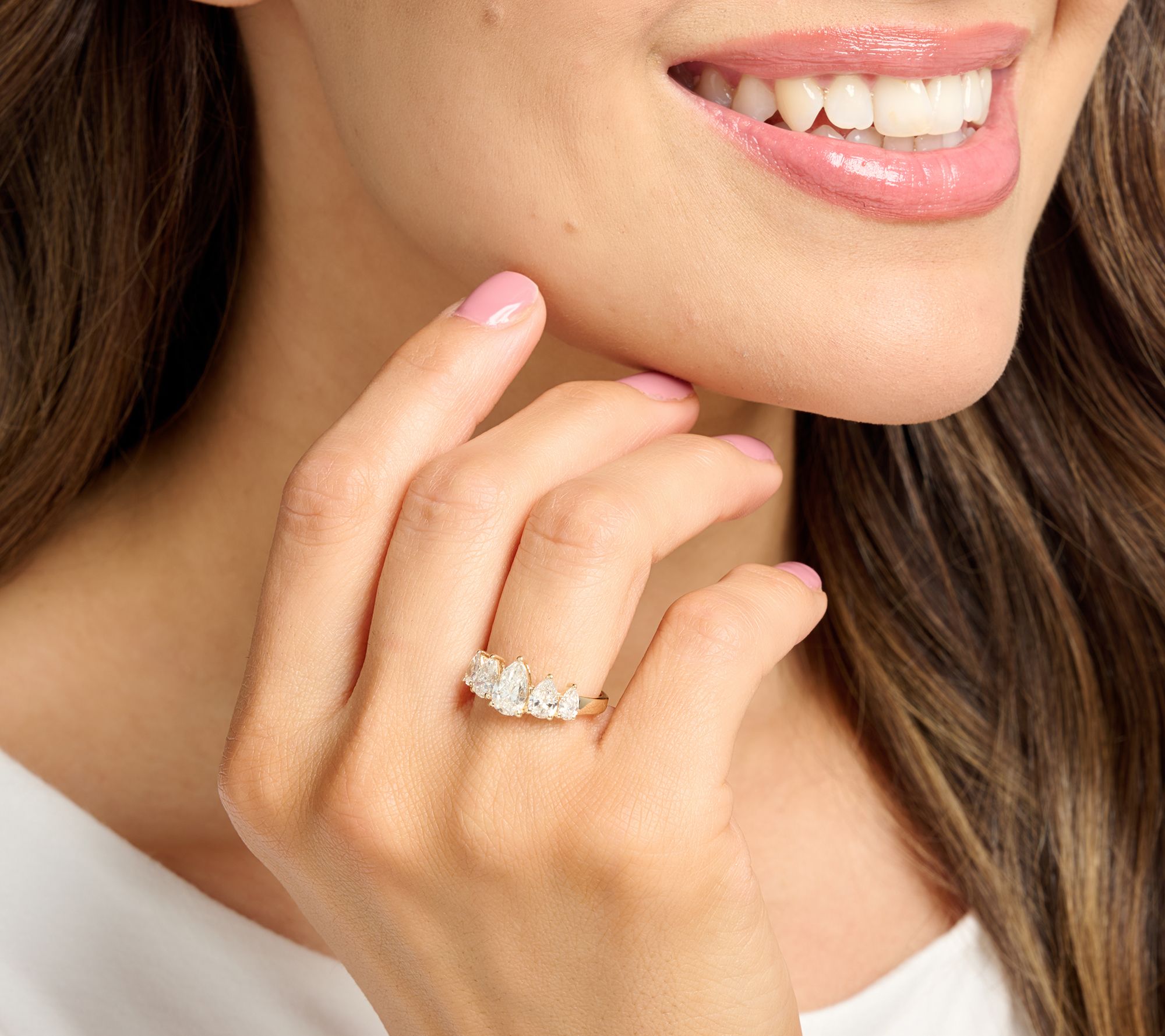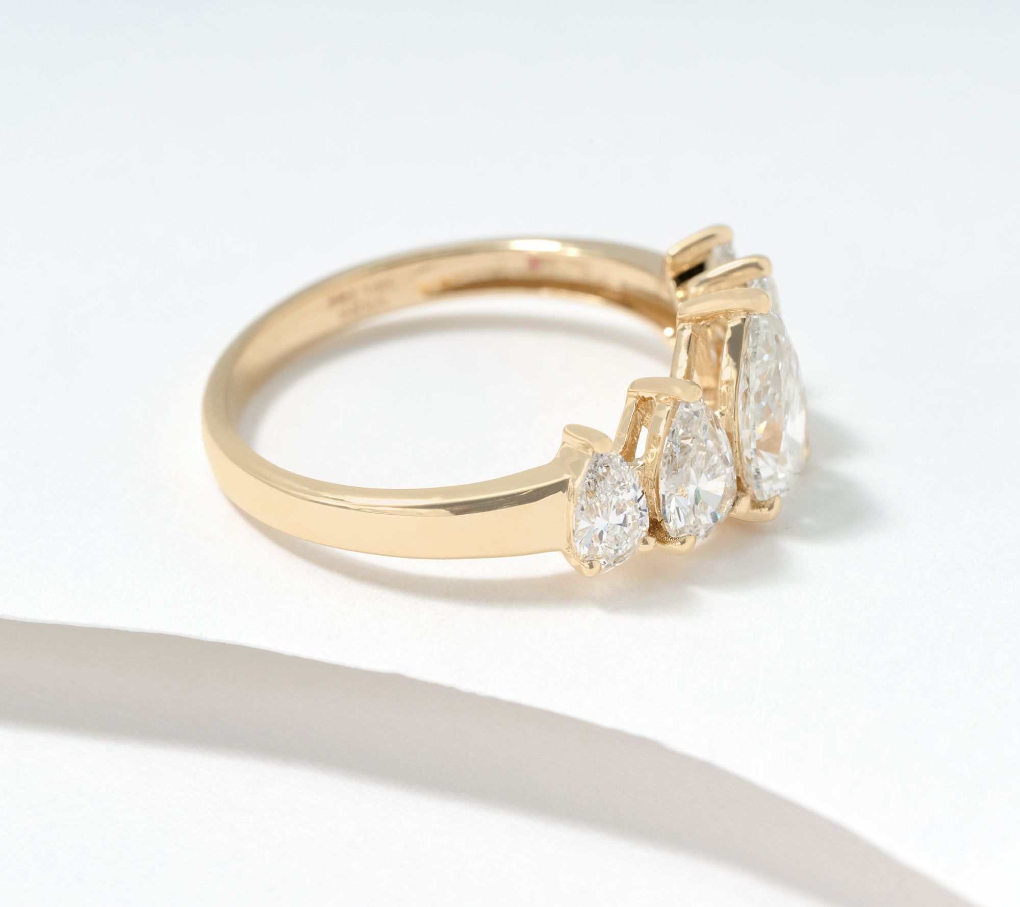 Features five prong-set, graduating pear-shaped lab-grown diamonds