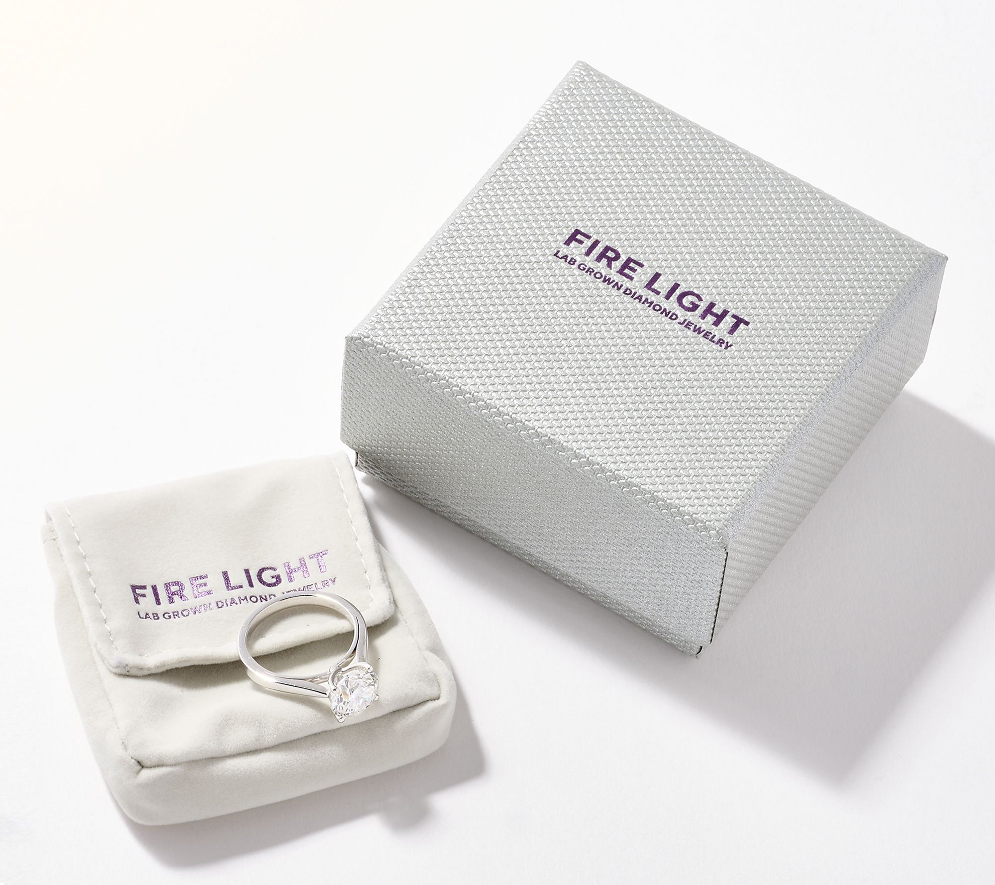 Sometimes the most simplest settings create the most stunning styles. This solitaire ring exudes confidence and sophistication thanks to its three-carat lab-grown diamond that's so mesmerizing, any other details would have been lost in its luxurious glow. From Fire Light Lab Grown Diamond Jewelry.