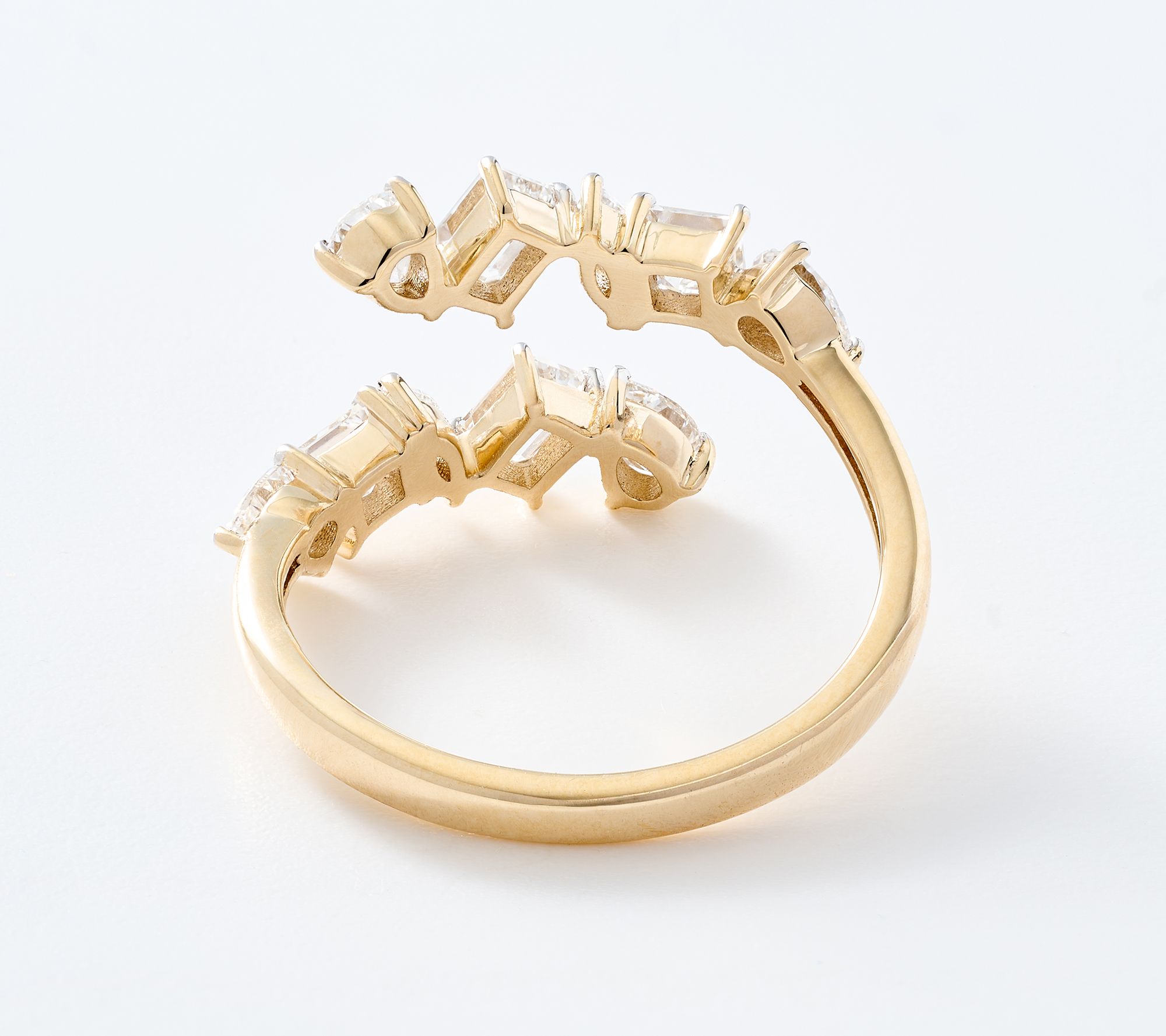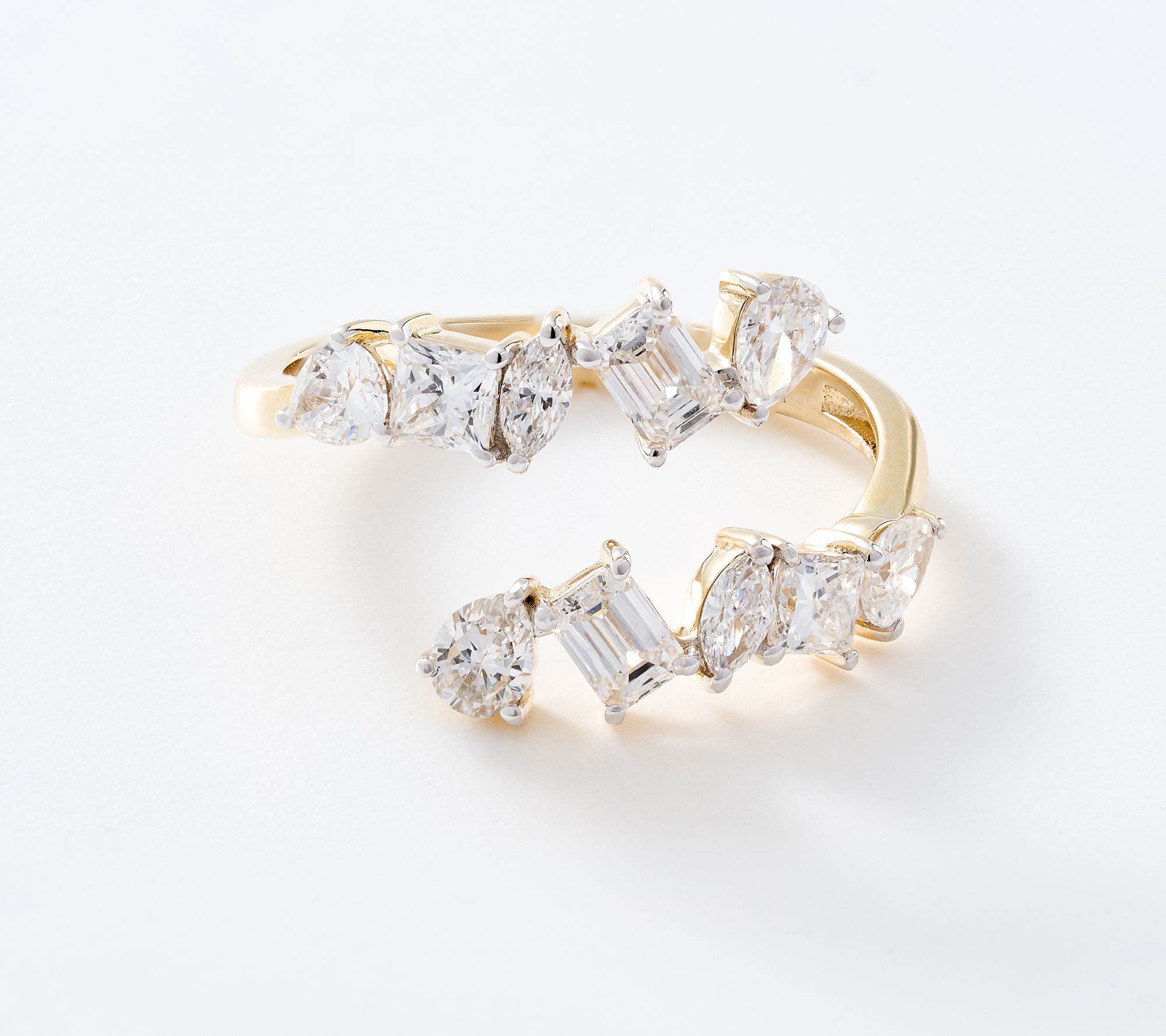 When you want an unexpected twist on classic luxury, this bypass ring delivers with its mixed-shape lab-grown diamonds arranged in a striking design. Whether it's worn to light up a casual dinner date or stacked to elevate a special style statement, the 14K gold setting brings out the contemporary brilliance of each unique stone. From Fire Light Lab Grown Diamond Jewelry.