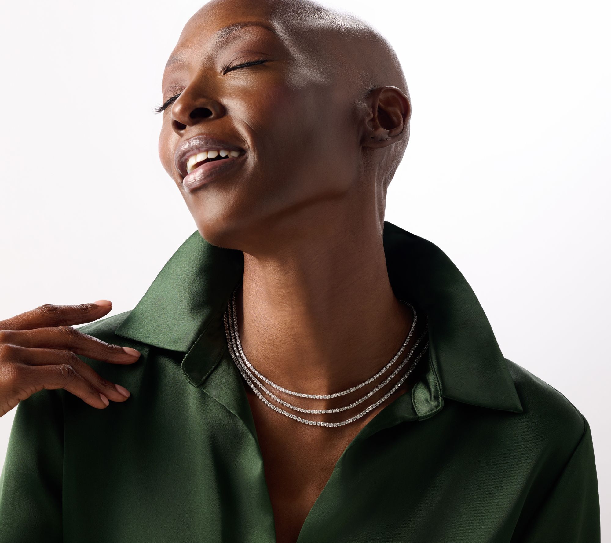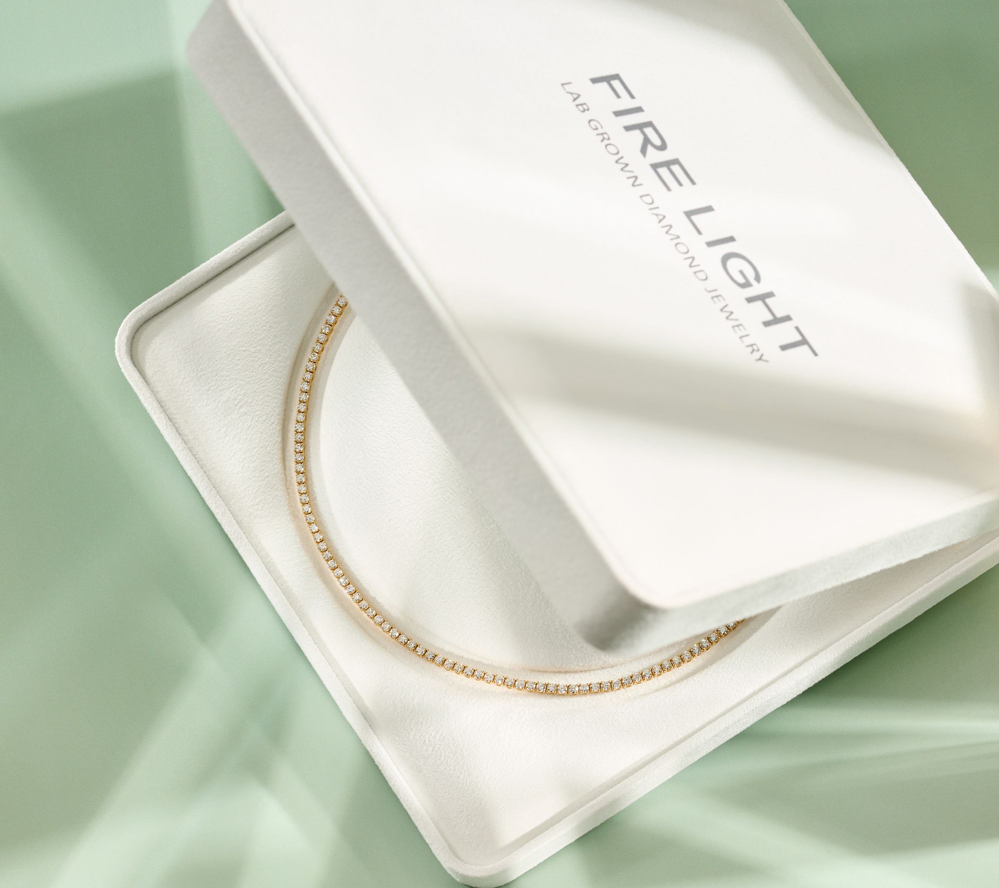 Tennis design; full-cut, round lab-grown diamonds; No Flip technology