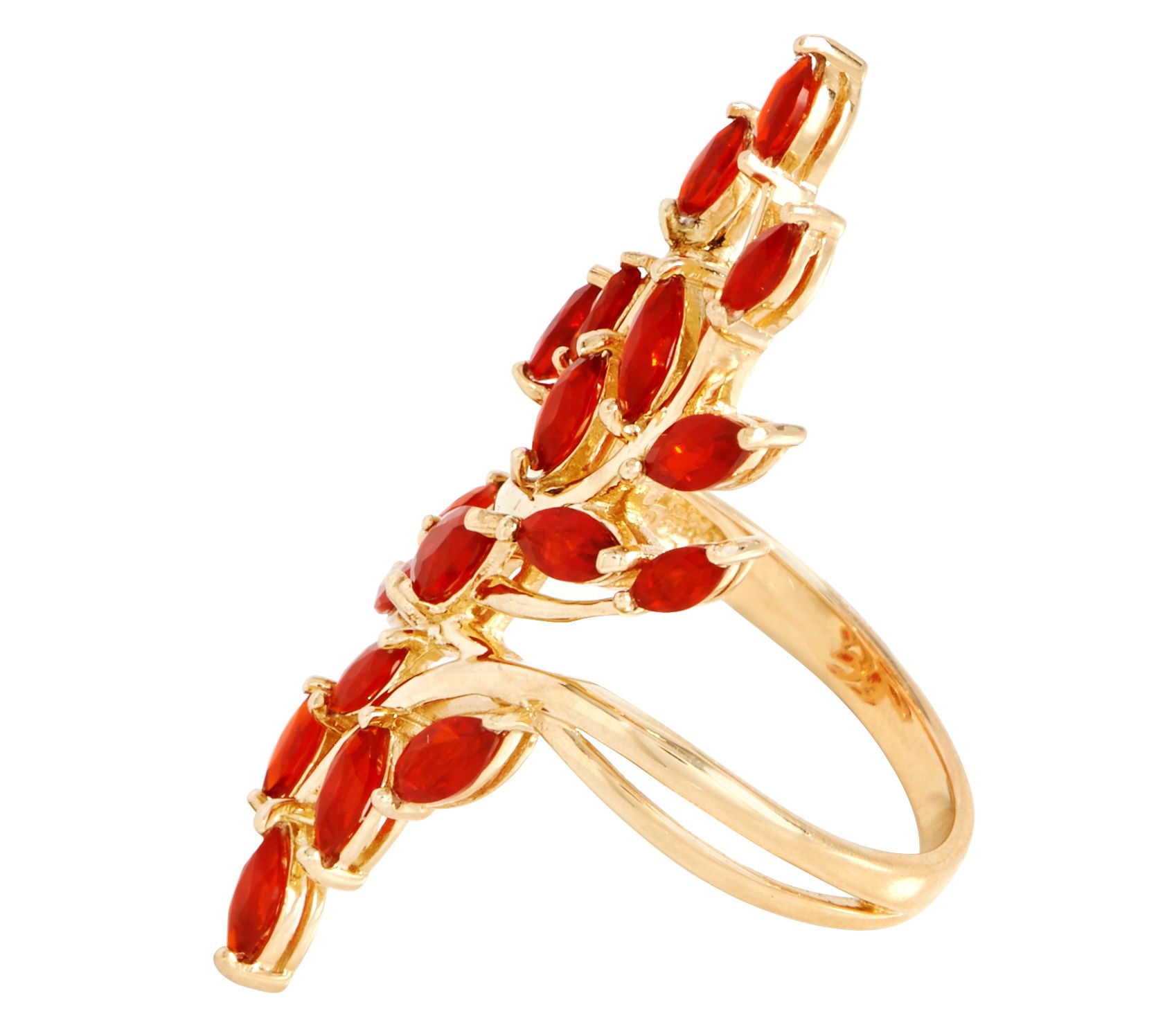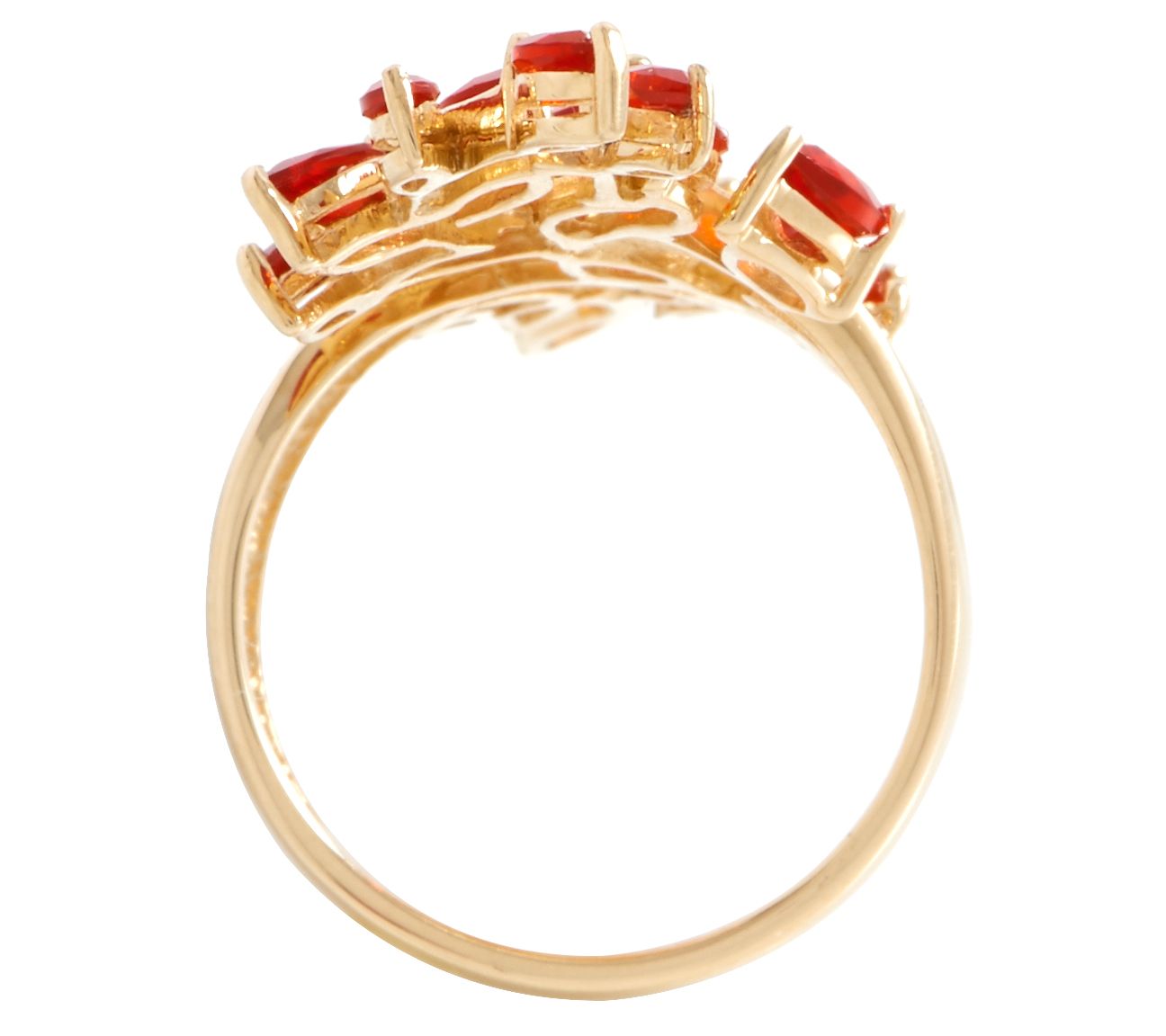 Fuel your passion for jewelry with flair when you wear this 14K gold ring featuring fire opals creating a flame design.