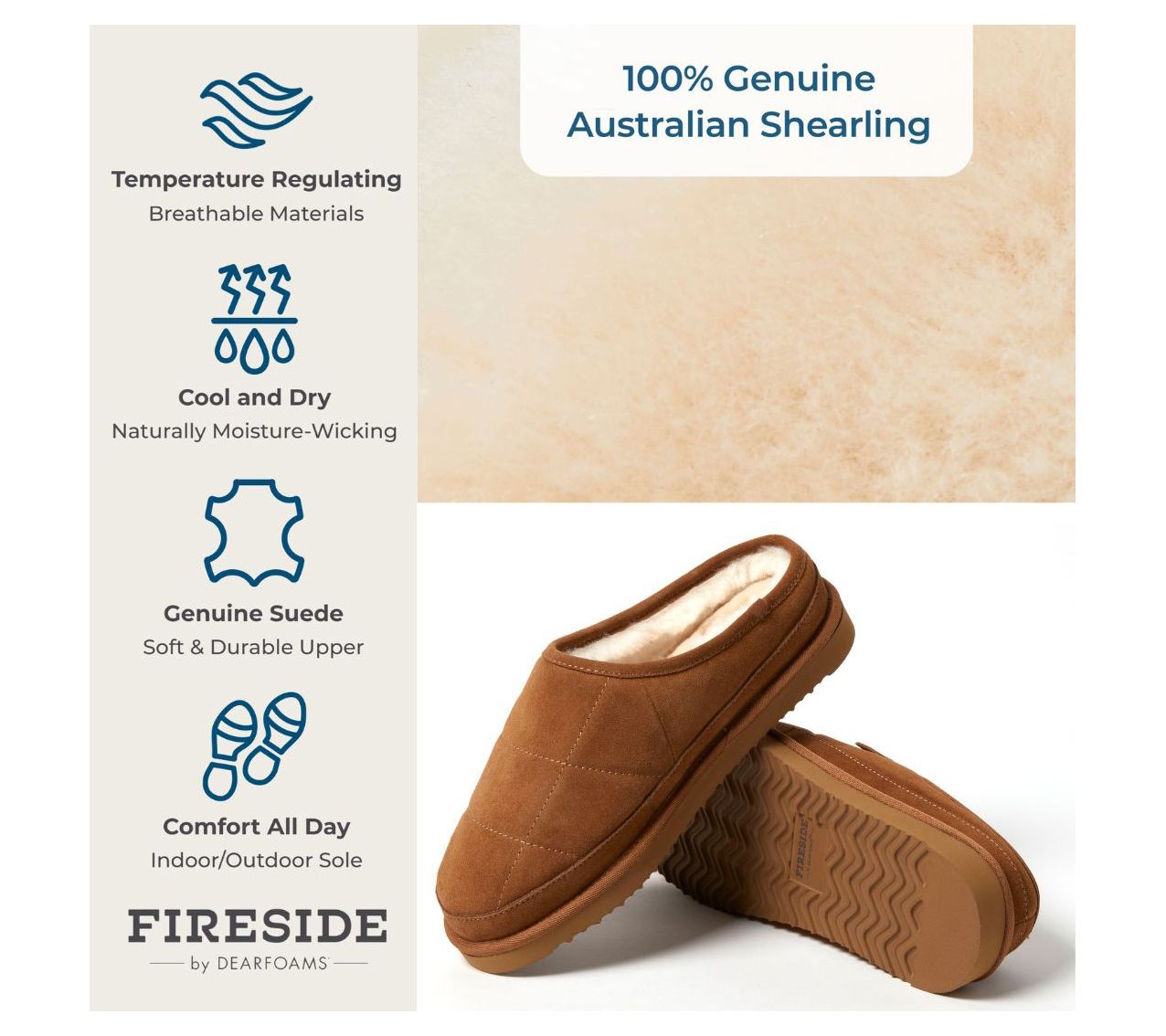 Kick off your shoes and slip into instant relaxation with these comfy shearling quilted clogs. Perfect for lounging around the house or stepping out for a quick errand, these slippers blend the plush comfort of shearling with the durability of a man-made sole. The memory foam insoles and relaxed fit ensure your feet feel pampered all day long. From Fireside by Dearfoams.