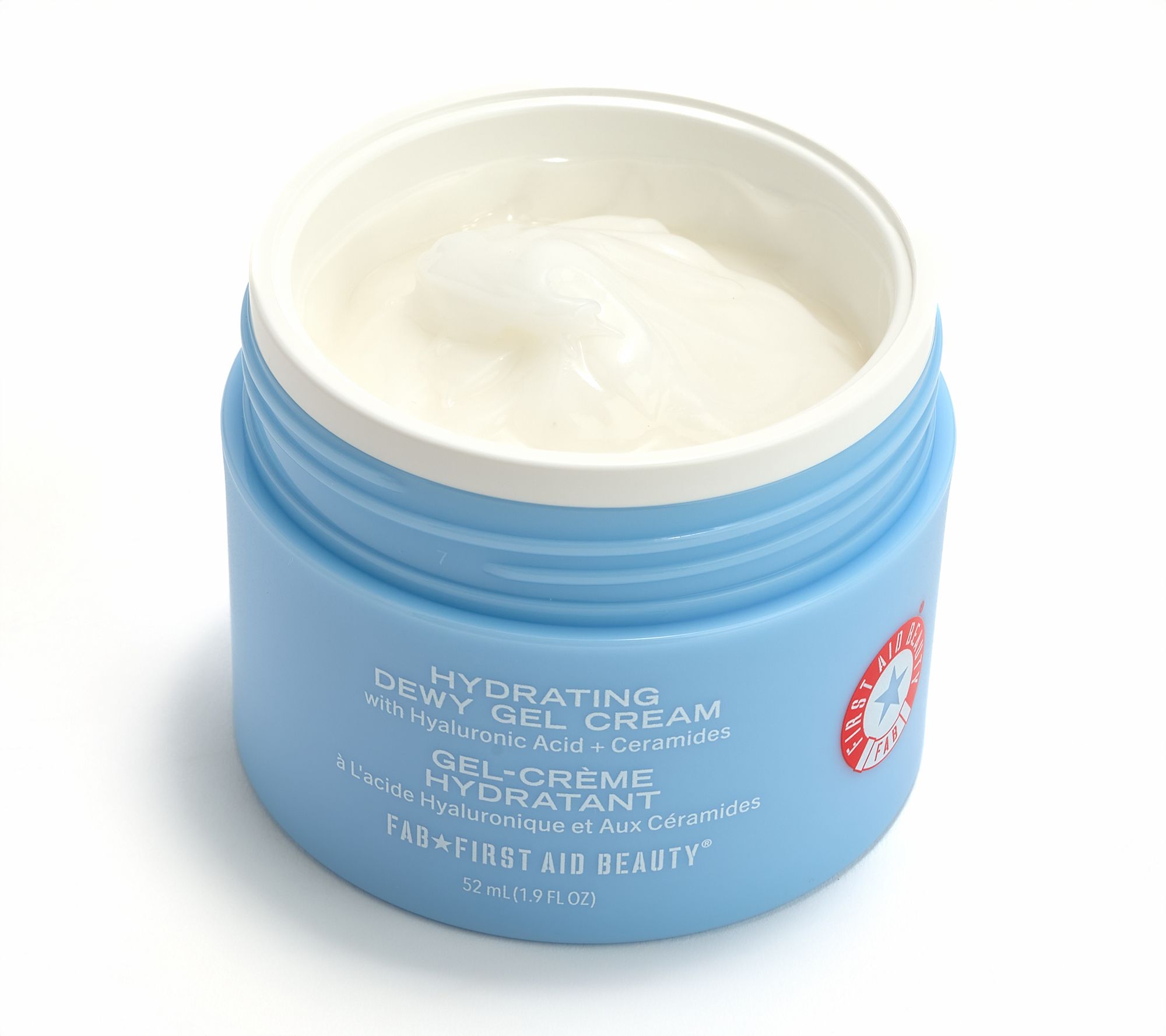From First Aid Beauty, Hydrating Dewy Gel Cream with Hyaluronic Acid + Ceramides helps to provide the skin with moisture and leaves skin looking refreshed and dewy. The formula contains sodium hyaluronate, a form of hyaluronic acid, plus glycerin and squalane -- known moisturizers that nourish the skin with moisture to help soften the skin. It also contains colloidal oatmeal, which helps to temporarily reduce the look of rough skin for smoother-looking skin, and niacinamide, which has been shown to help temporarily brighten the look of uneven skin tone. Formulated to be non-irritating, non-comedogenic, and suitable for sensitive skin.