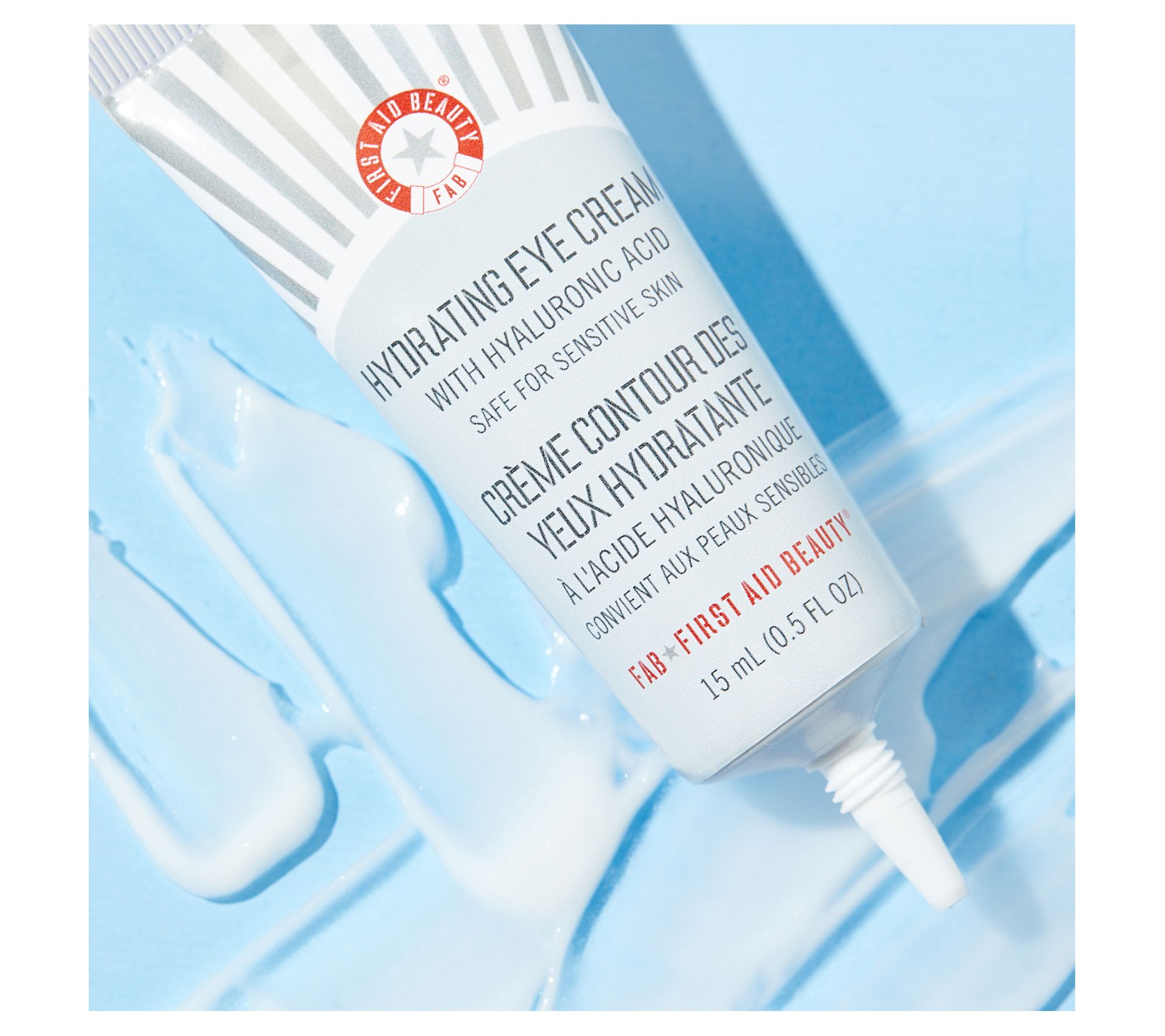 First Aid Beauty Hydrating Eye Cream with Hyaluronic Acid instantly provides hydration and help smooth the look of fine lines and wrinkles.