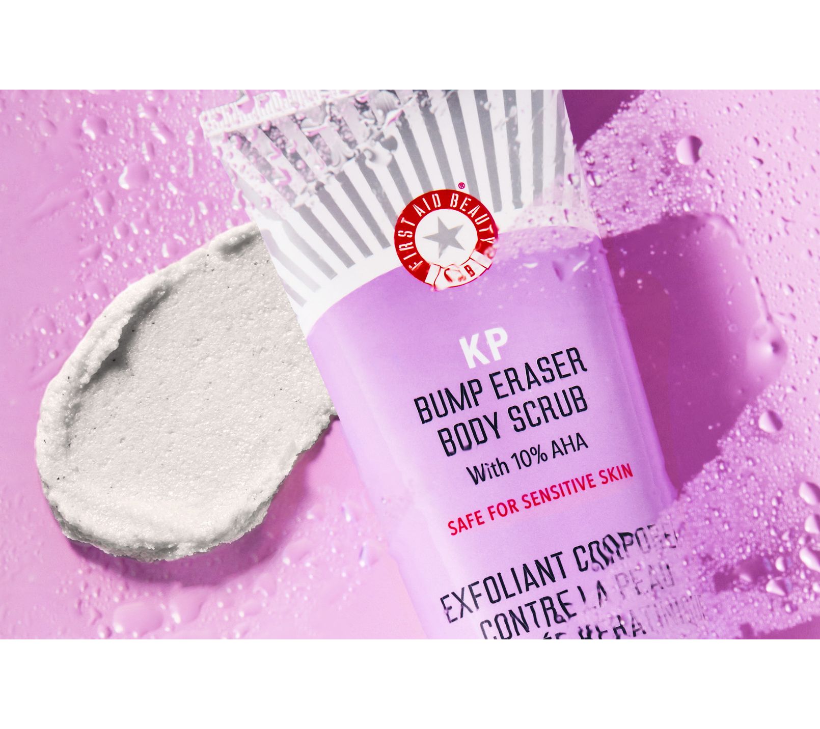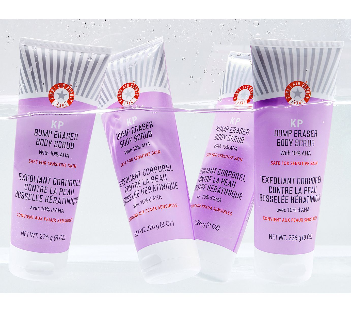 This fast-acting body scrub from First Aid Beauty uses glycolic and lactic acids at a combined level of 10% AHAs to resurface skin's top layer, plus pumice to physically exfoliate, helping improve skin's texture and smooth away bumps and roughness.