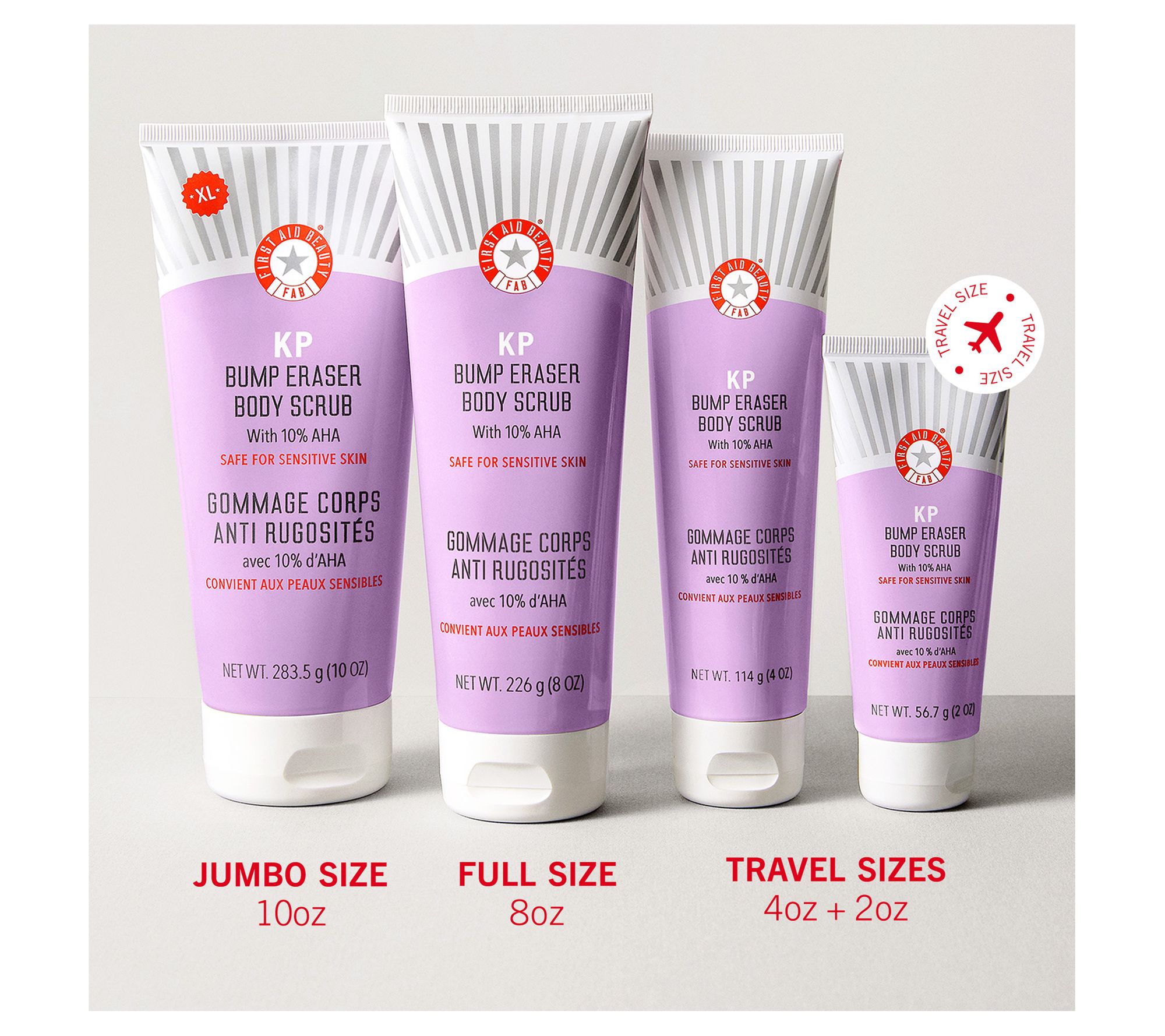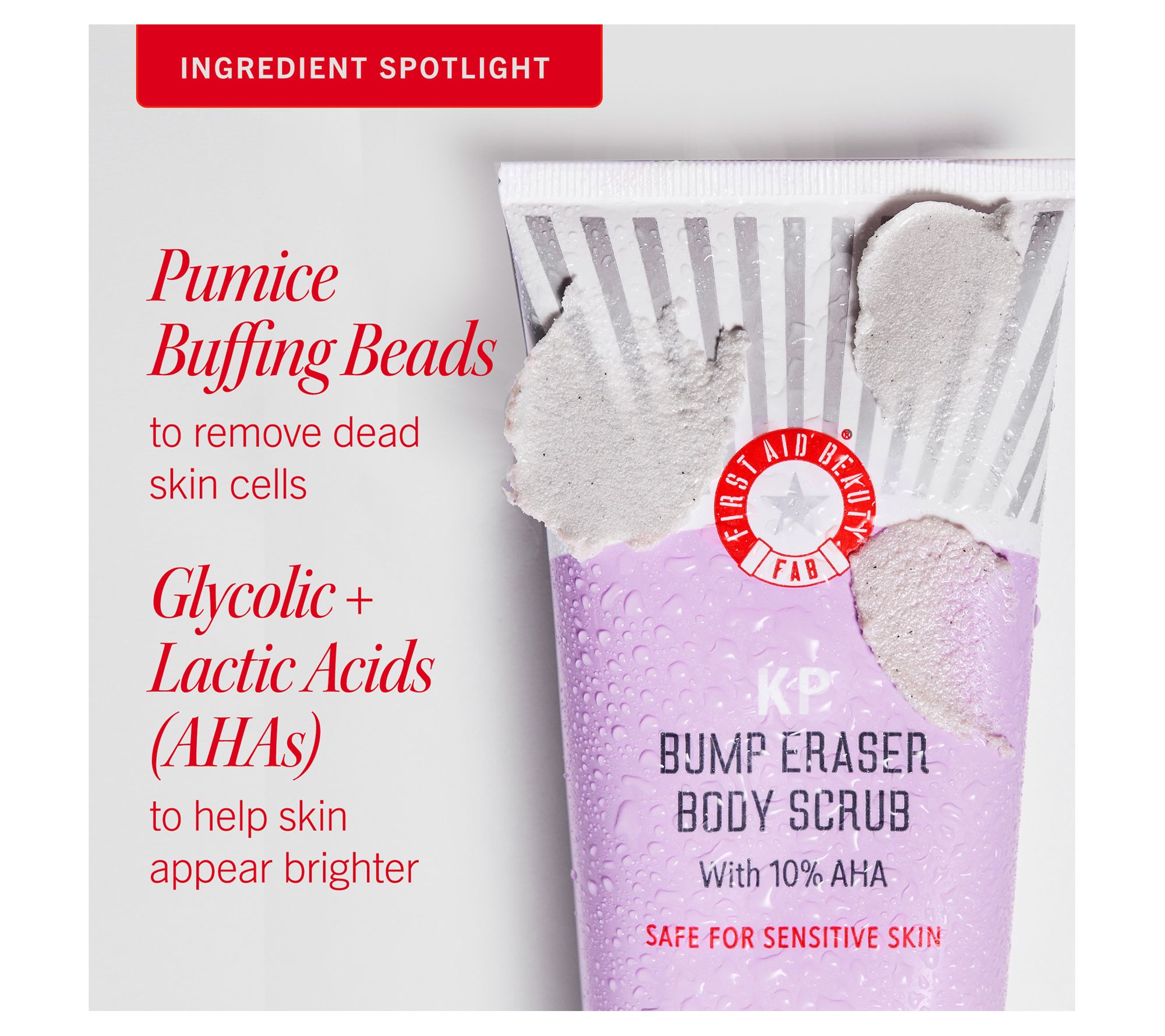 This fast-acting body scrub from First Aid Beauty uses glycolic and lactic acids at a combined level of 10% AHAs to resurface skin's top layer, plus pumice to physically exfoliate, helping improve skin's texture and smooth away bumps and roughness.
