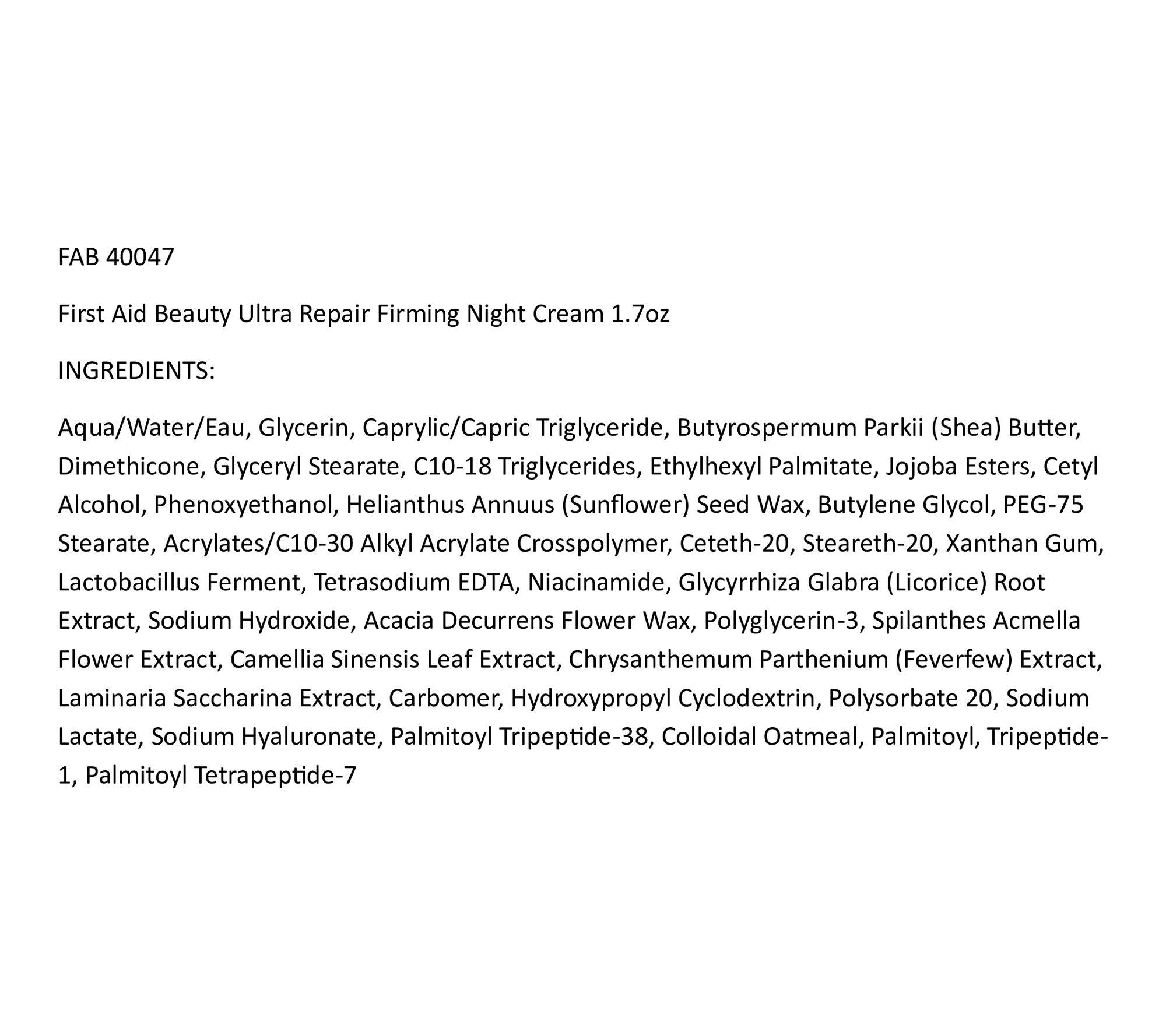 From First Aid Beauty, Ultra Repair Firming Night Cream is a rich and buttery night cream that nourishes the skin and helps improve the visible signs of aging. The luxe nourishing cream intensely hydrates the look of skin to visibly improve fine lines, wrinkles, and the visible signs of aging each night -- so you can wake up looking hydrated.