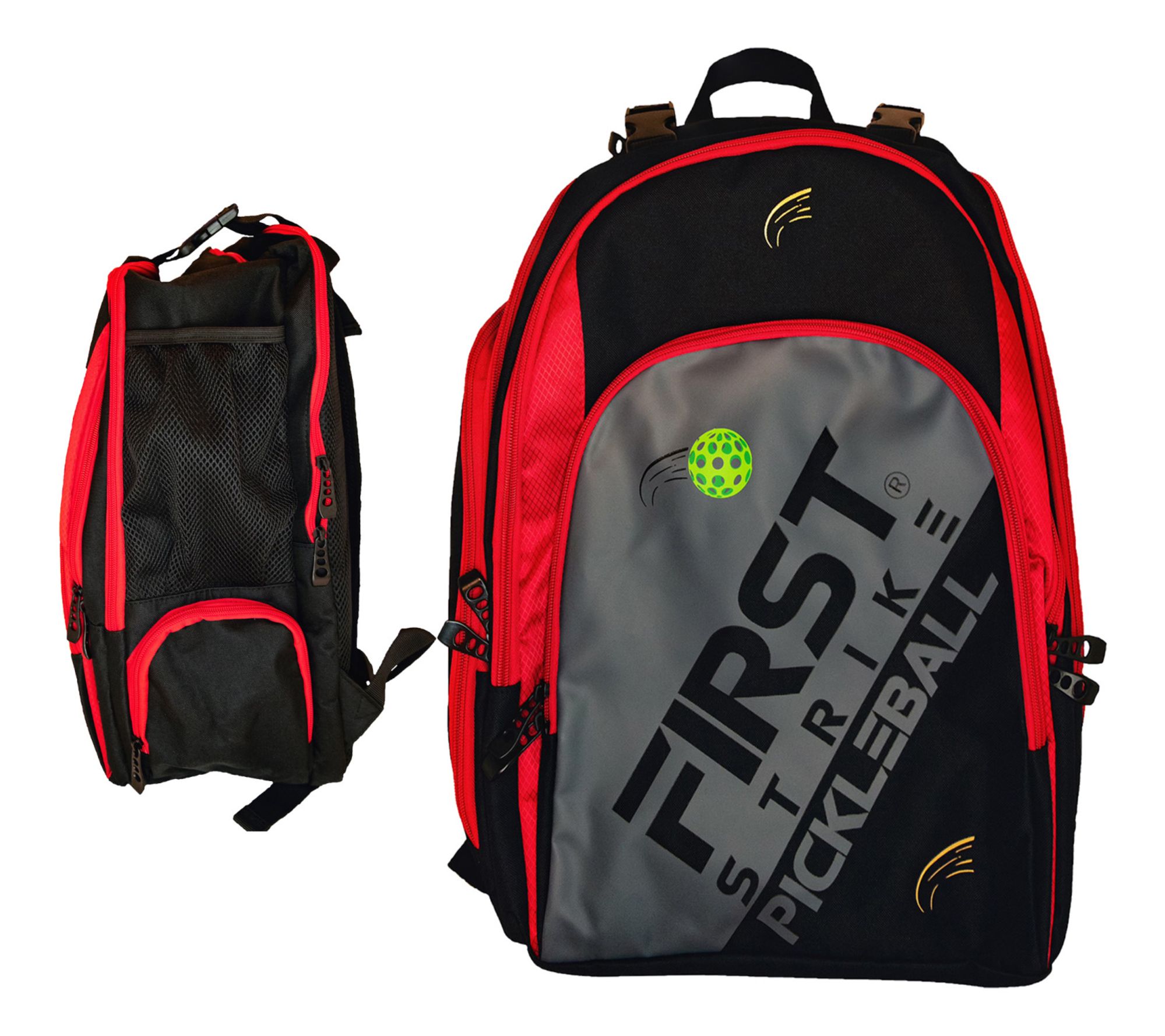 Perfect for those intense pickleball matches or a leisurely day at the courts, this ultimate pickleball bag is designed to meet all your needs. With seven separate pockets, you’ll have ample space to organize your gear, from paddles and balls to your phone and keys. The cushioned shoulder straps and back make it comfortable to carry, and it’s even great as an airport carry-on for your travels. From First Strike Pickleball.