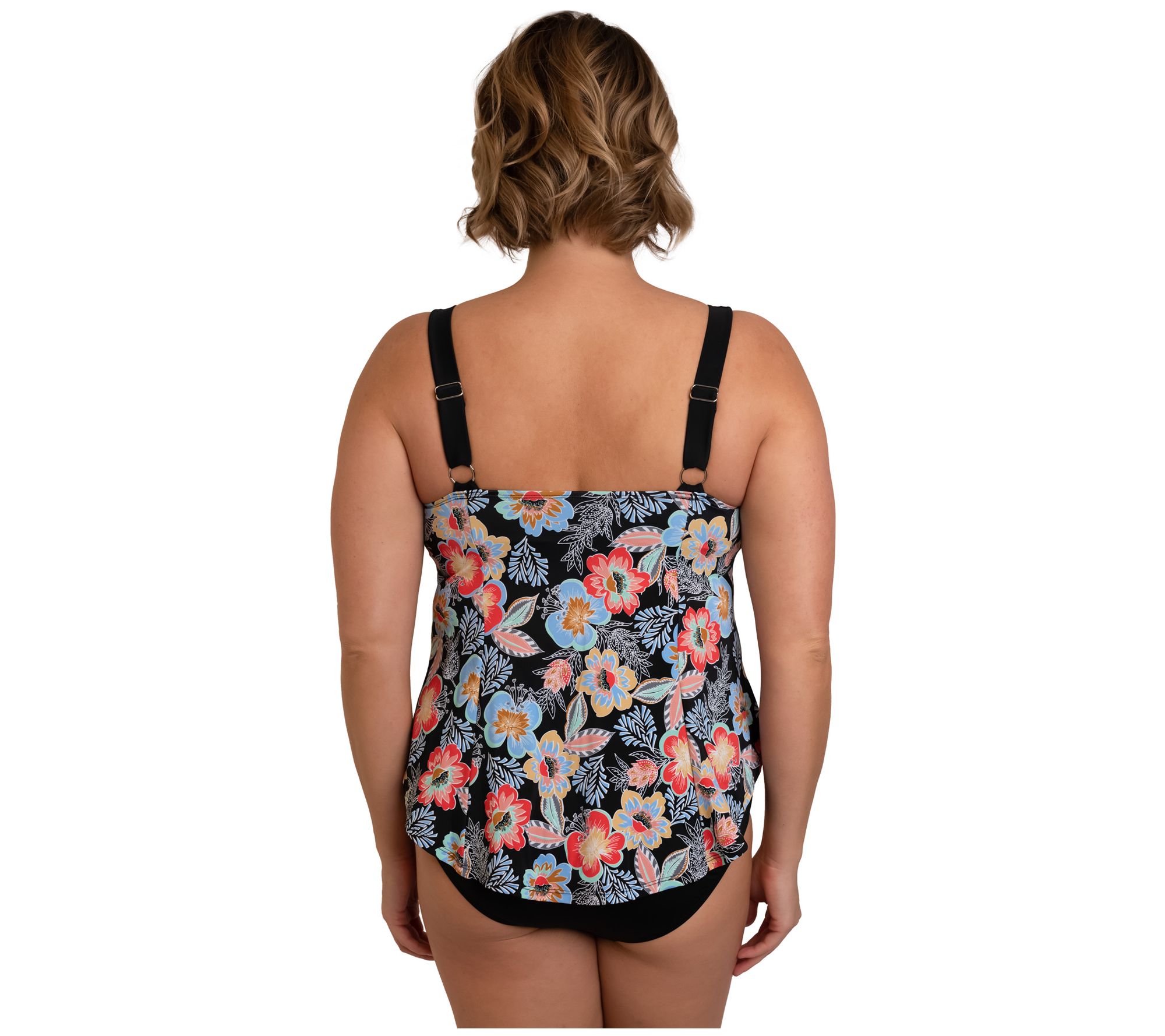 • Features: square neck, tankini, rounded shirt tail hem, supportive soft cups, wide adjustable straps