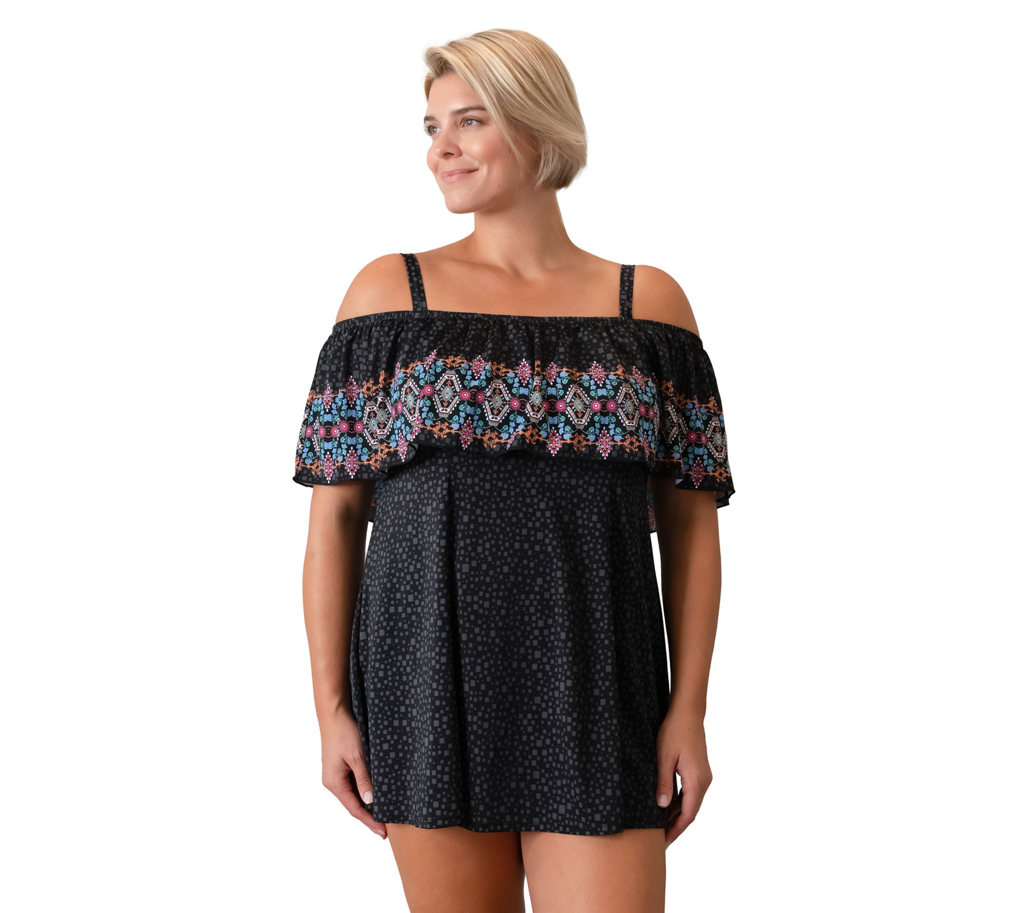 Wear this adjustable swim dress above or below your shoulders for customizable style on sunny shoreside days. From Fit 4 U.