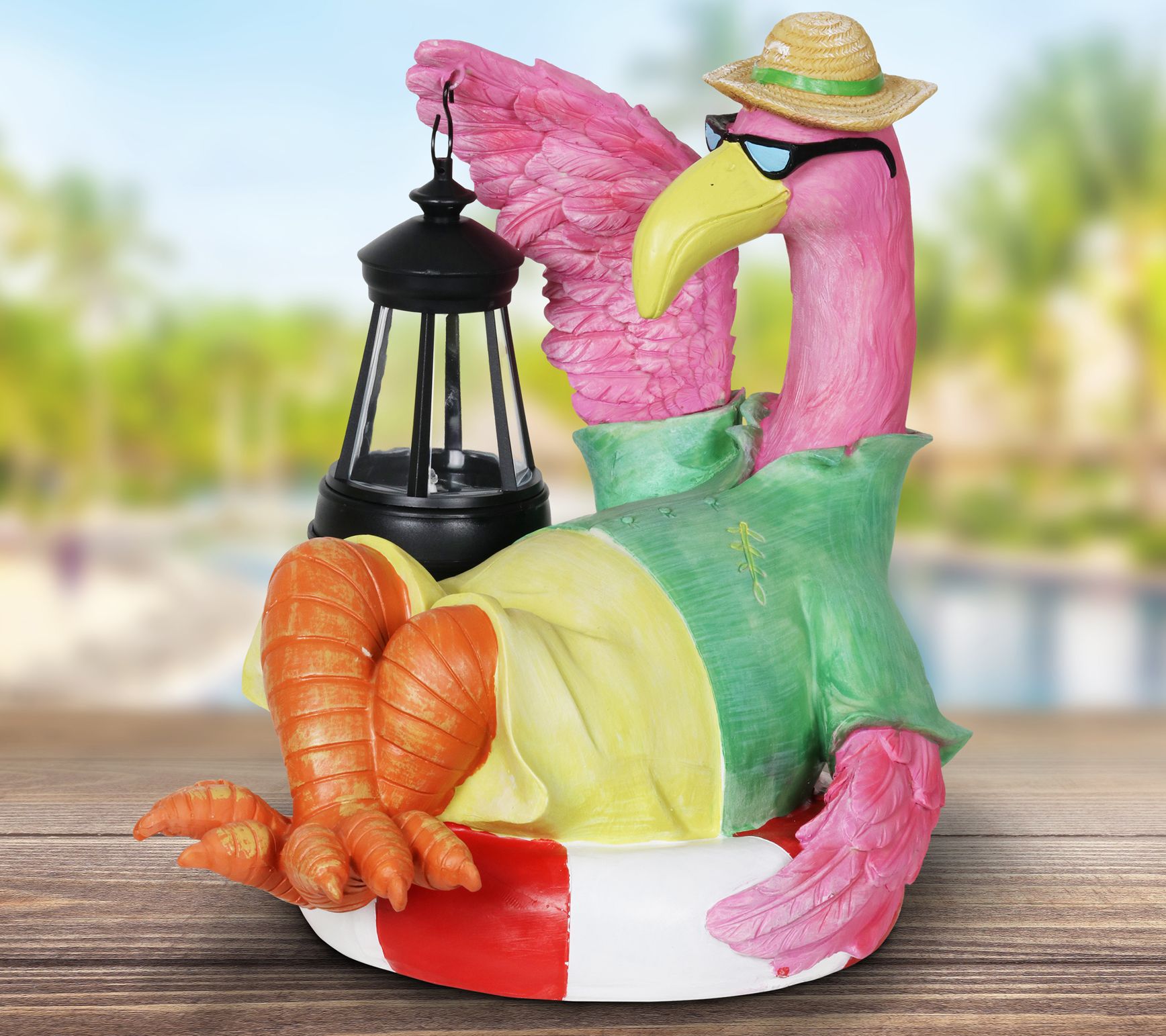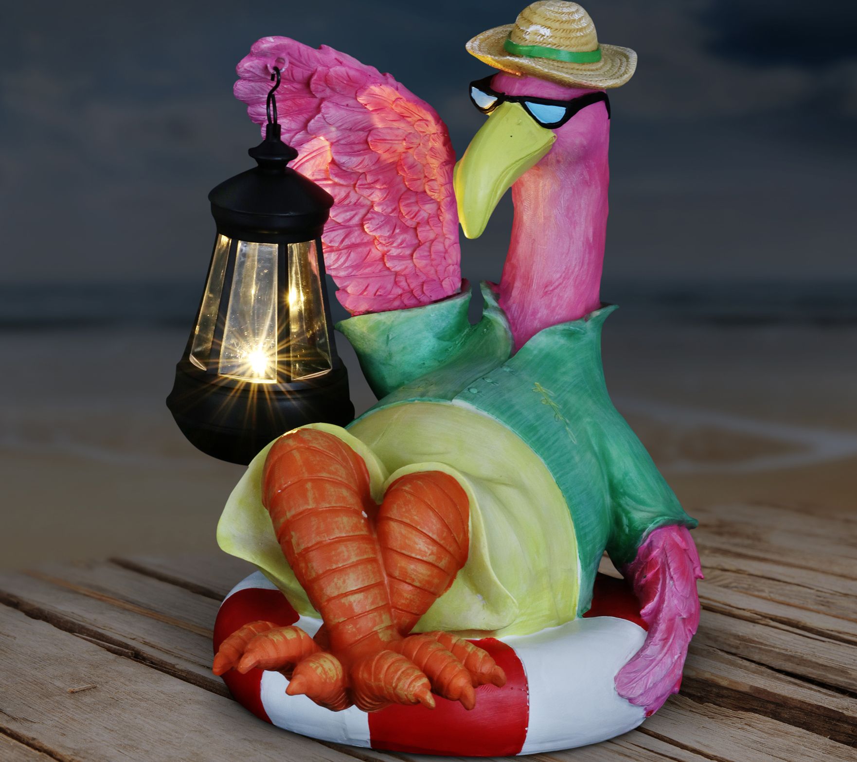 Flamingo Holding Solar Lantern by Exhart