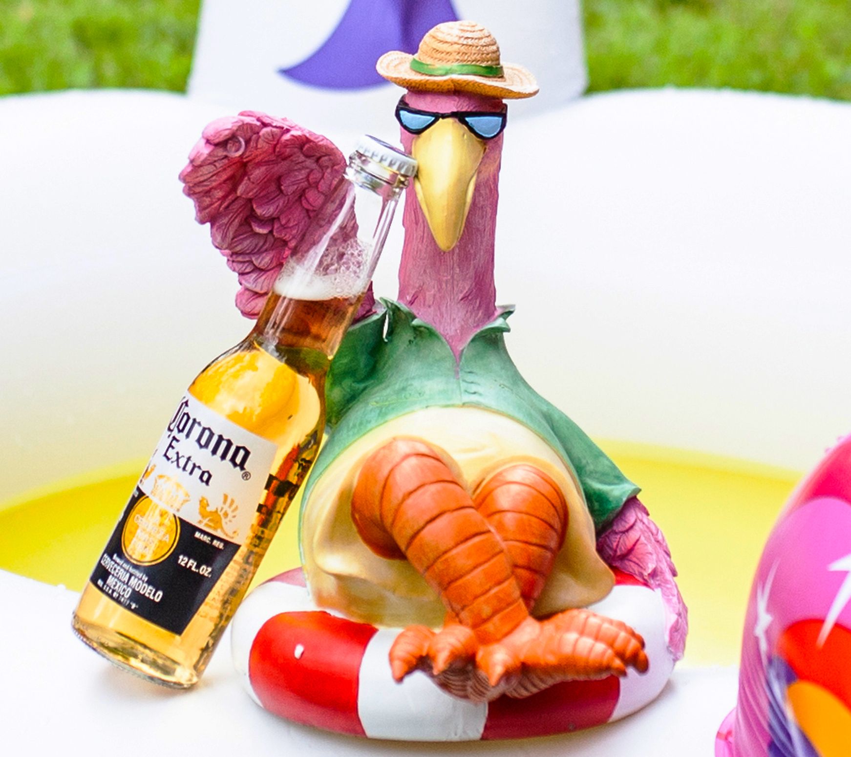 This funky flamingo statue adds a fun, tropical touch to your garden, with solar-powered LED lights that automatically glow at dusk. From Exhart.