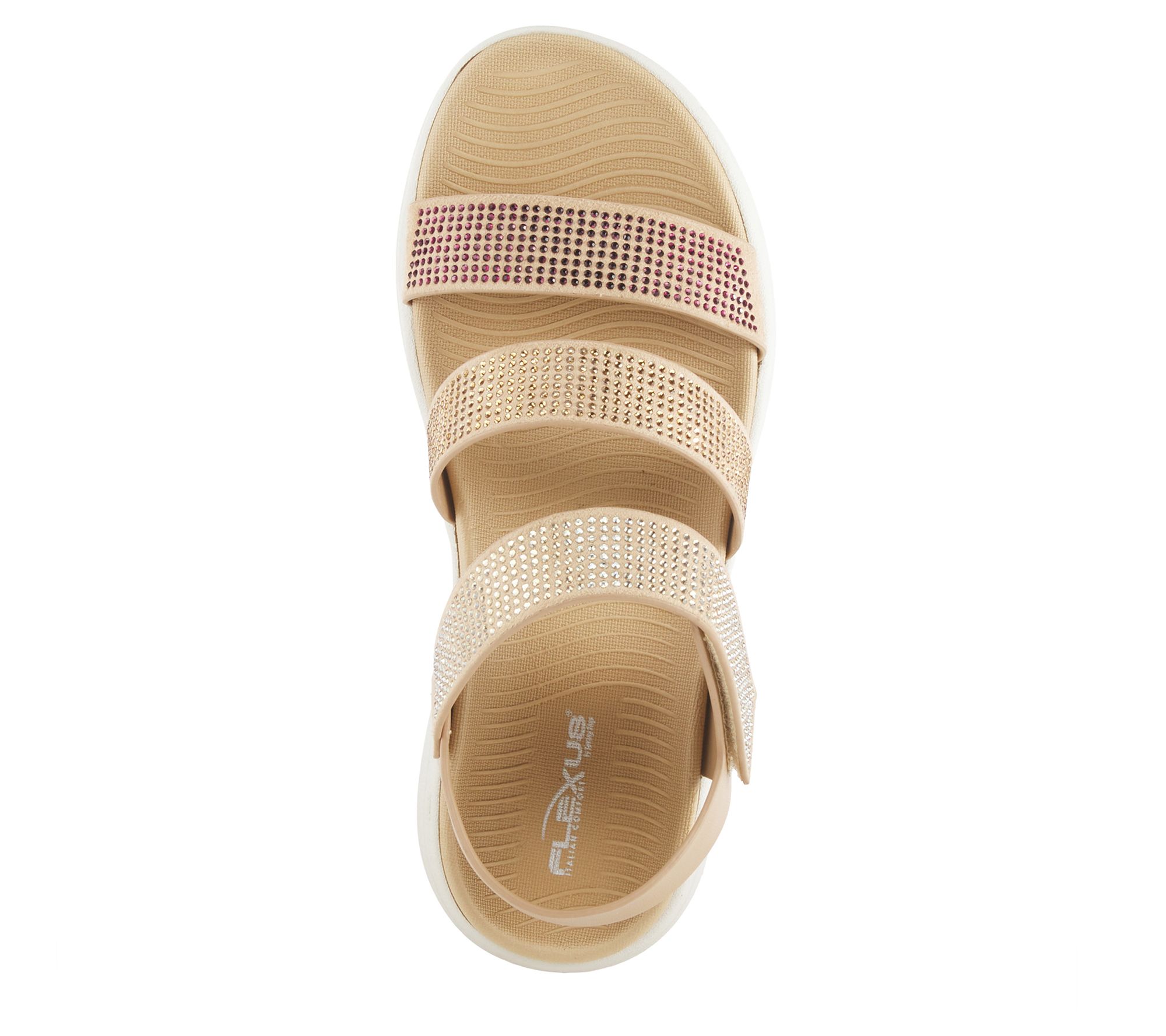 Put your best foot forward wearing these glamorous adjustable-strap sandals adorned with eye-catching rhinestone accents. From Flexus by Spring Step.
