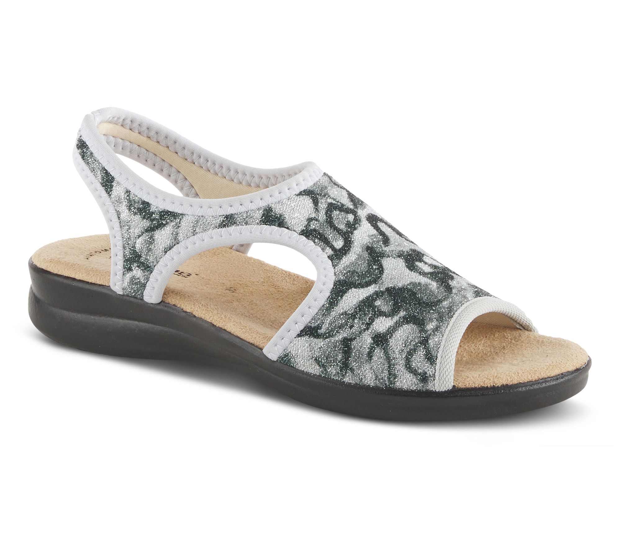 Add a splash of modern style to your warm-weather looks with the Nyaman, a stretchy sandal with an allover swirl pattern and an insole that keeps feet happy. From Flexus by Spring Step.