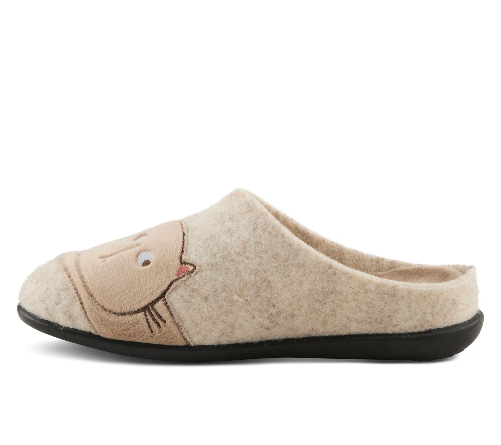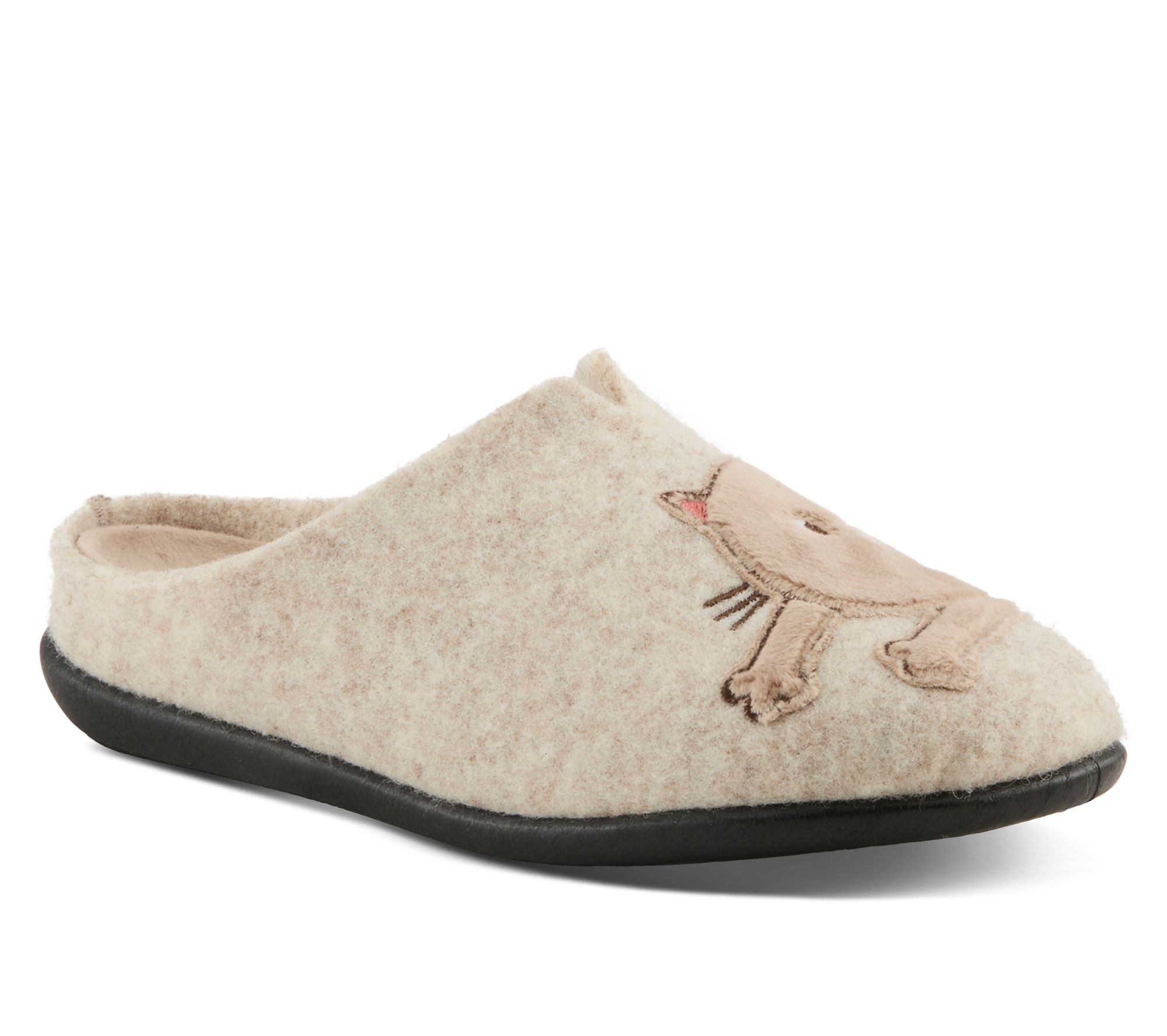 Bring cozy charm to your downtime with these cat-themed slippers -- warmth and whimsy rolled into one for bedtime reading or lazy weekend mornings. Soft boiled wool uppers and cushioned removable insoles offer comforting support, while the flexible sole makes movement effortless as you lounge or tend to household tasks. From Flexus by Spring Step.