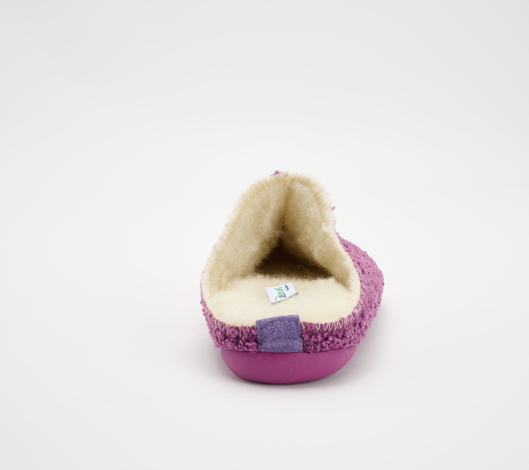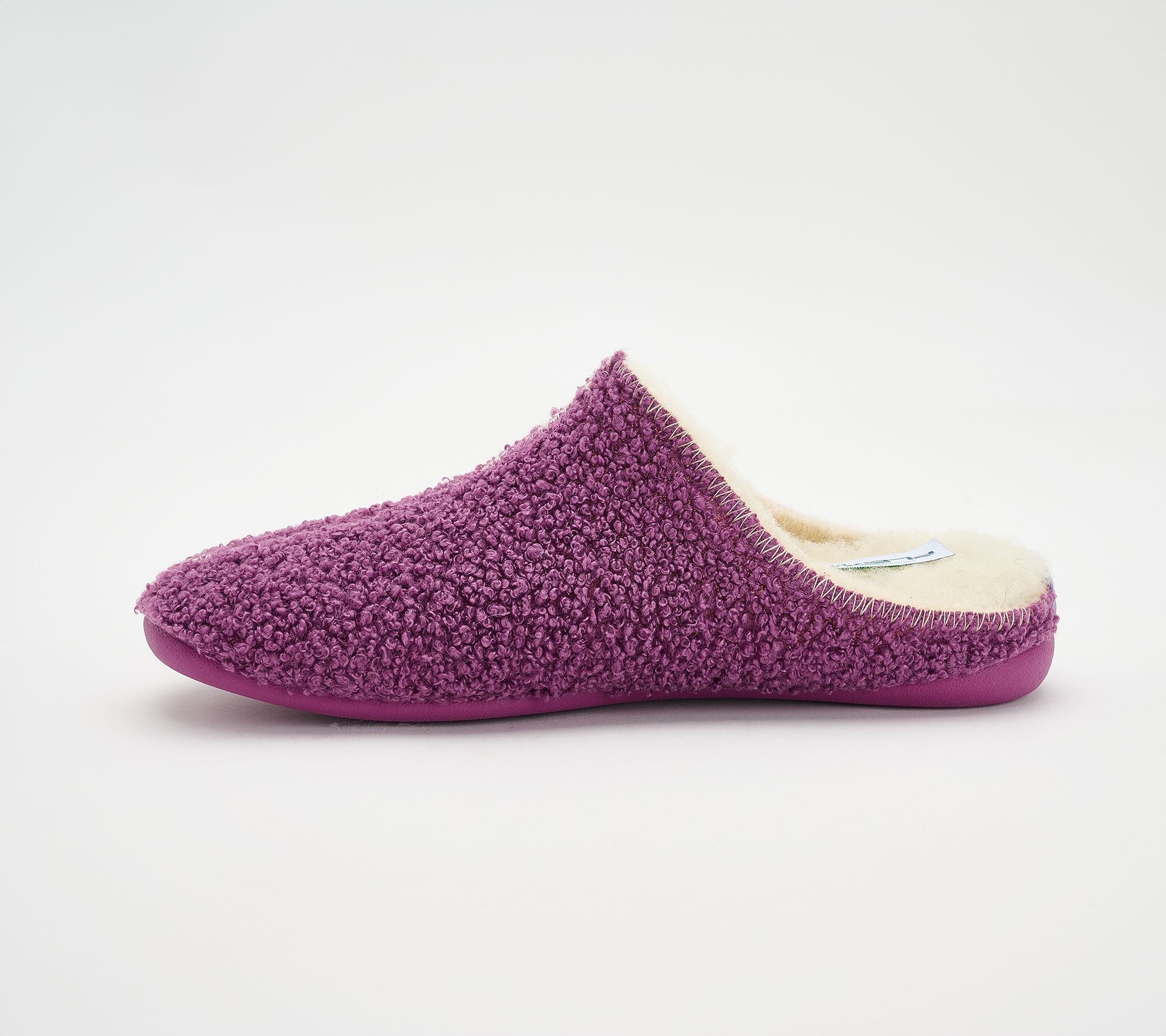 Zig-zag center seam on sherpa-like textured upper, slip-on design