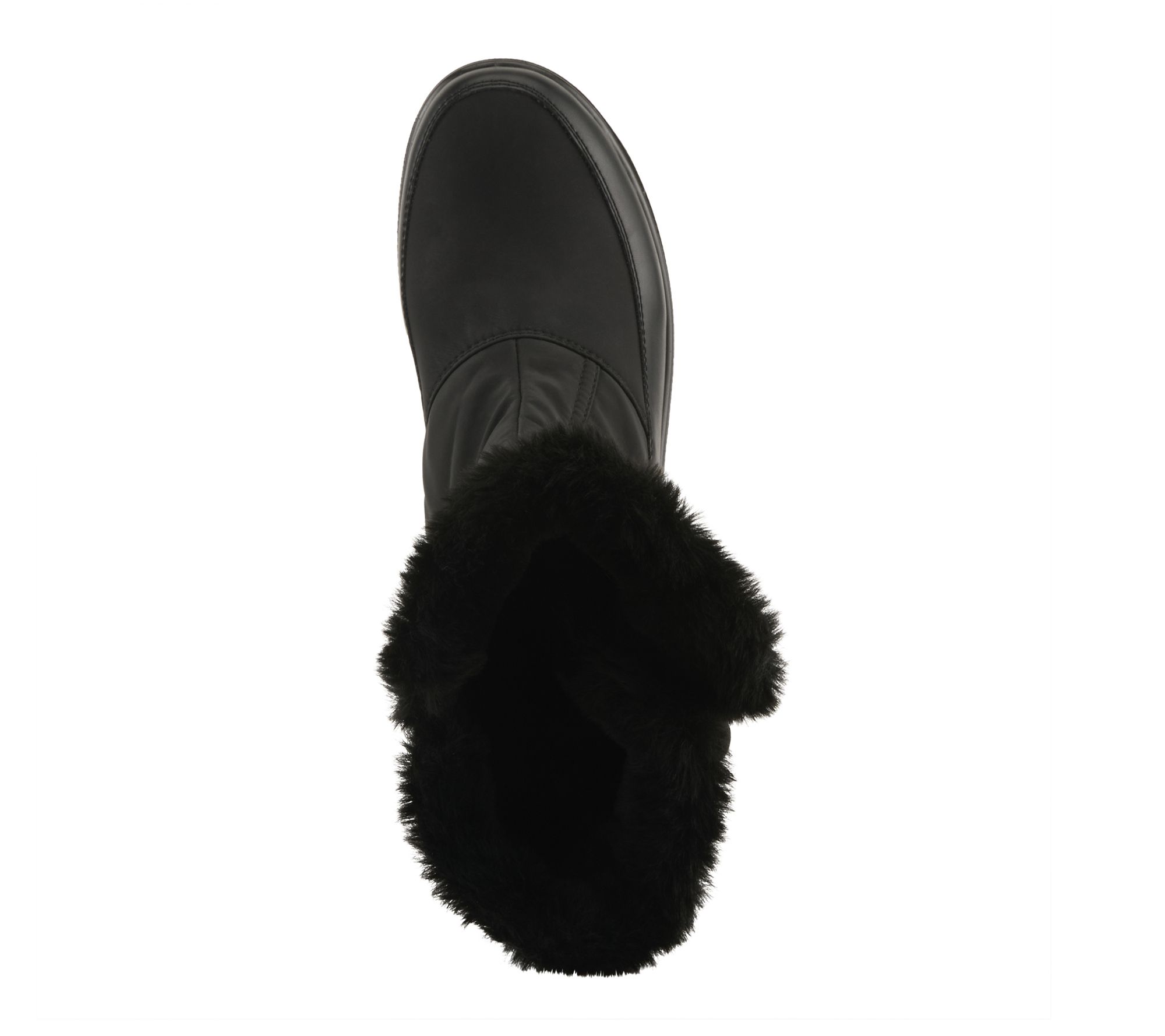 • Quilted nylon and faux leather upper, inside zipper, dual toggle closures, rounded toe, matching faux fur lining