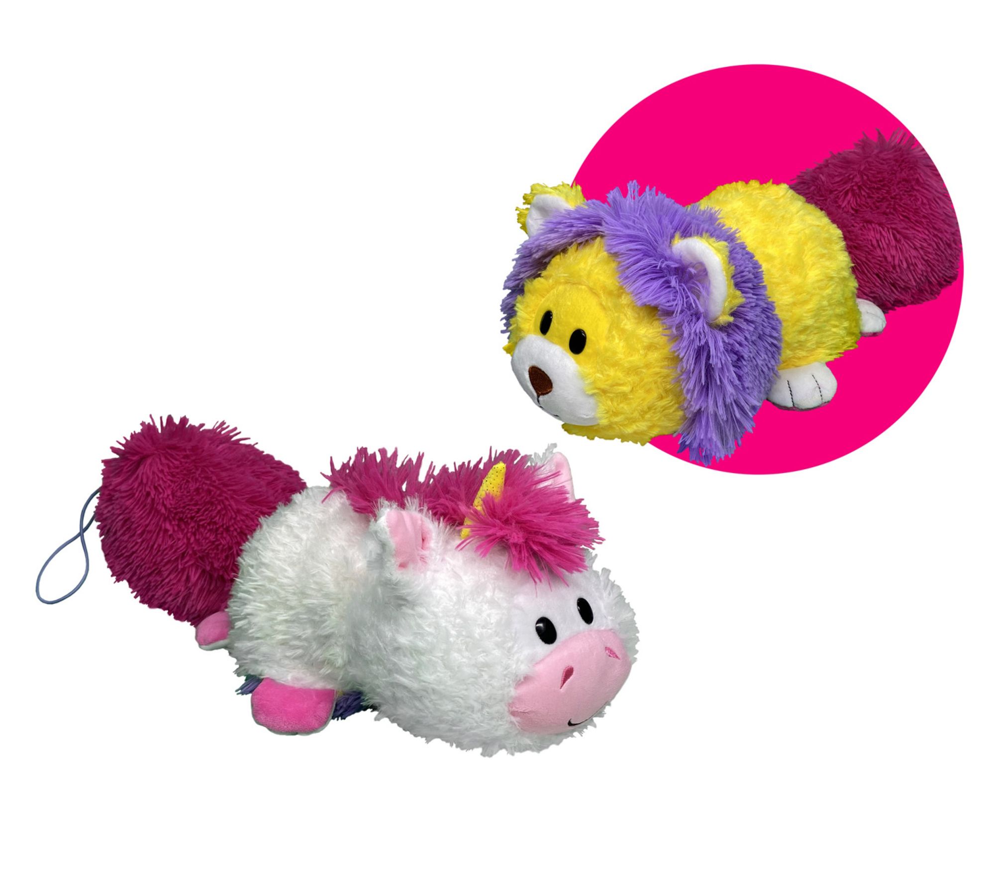 Transform playtime with the FlipaZoo Magic Tails, a plush toy that seamlessly flips from one lovable animal to another! With its super-soft tail that doubles as a storage pouch, this cuddly companion is perfect for naps, play, and travel. Let your little one's imagination soar as they discover the surprise friend hiding in each flip. From FlipaZoo.