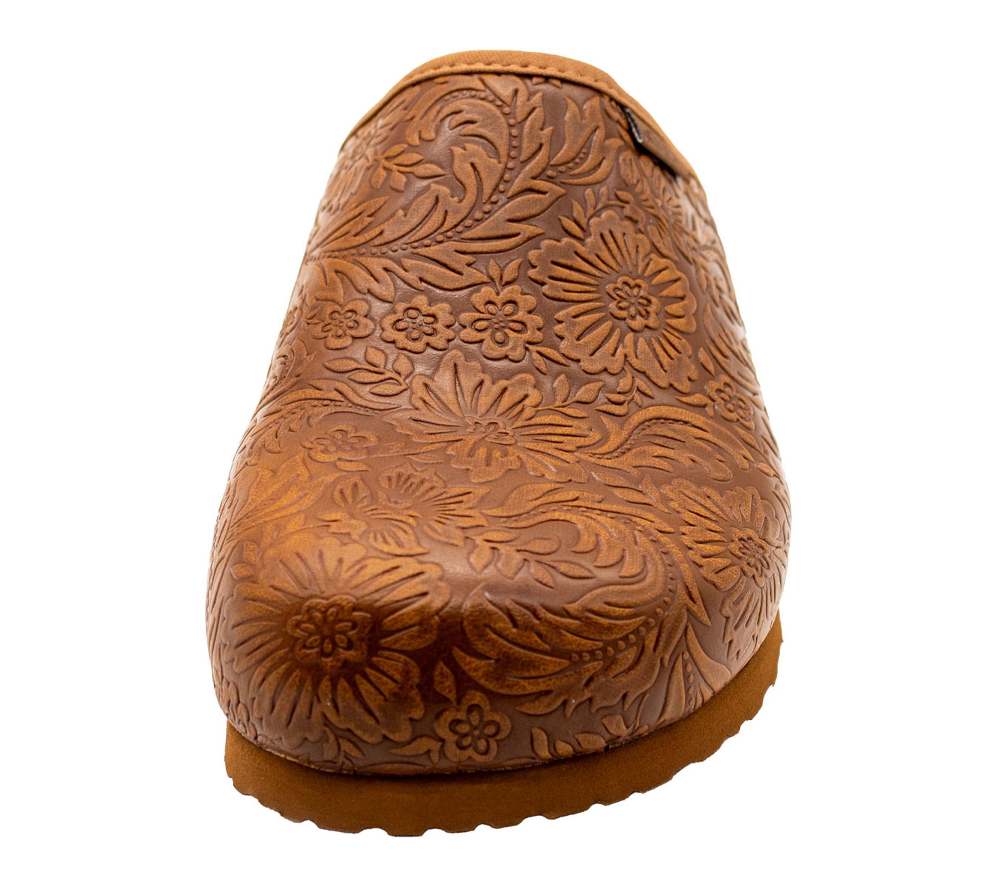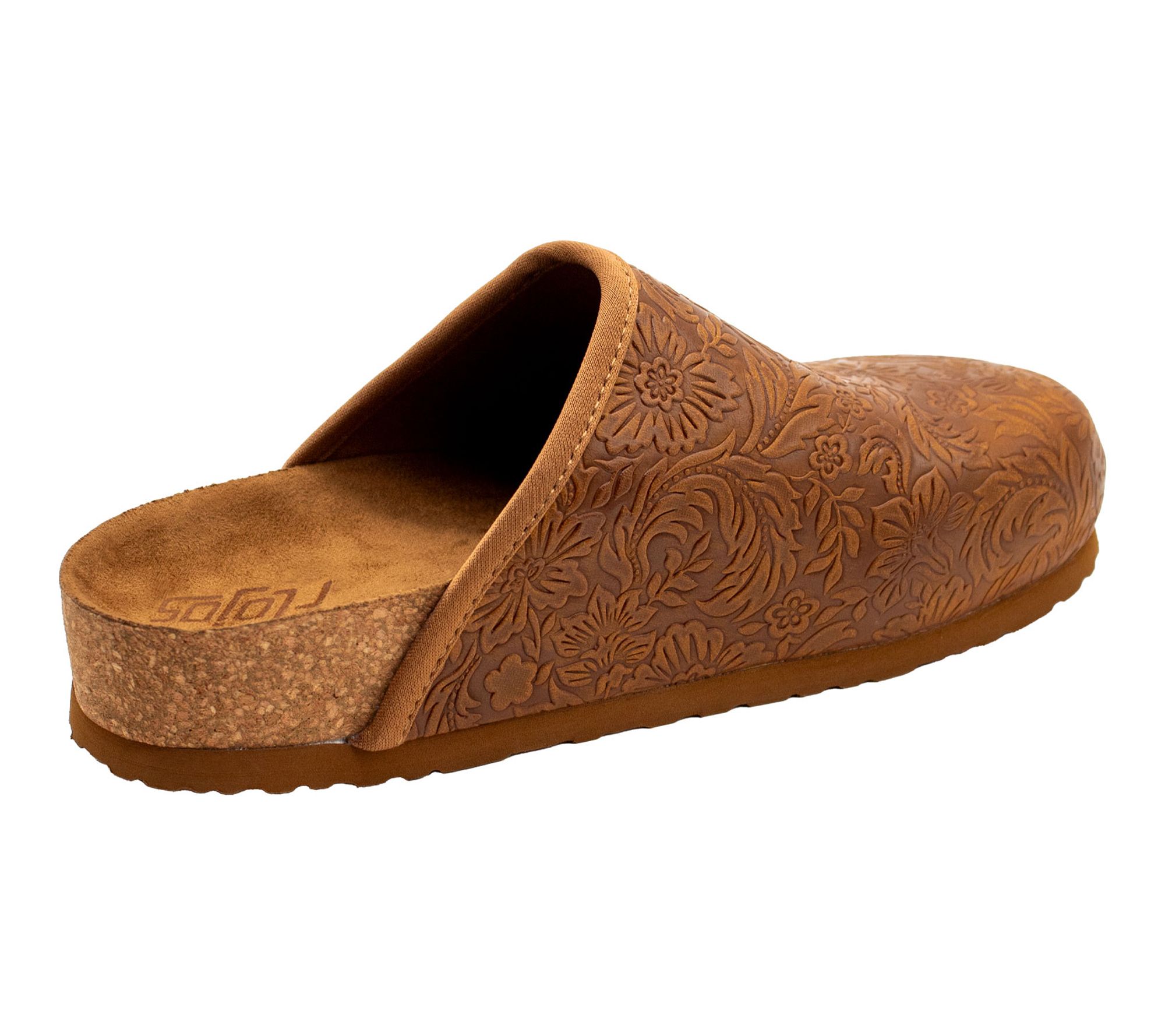Whether you're heading to the farmers market or enjoying a weekend stroll, the Sofia clogs bring comfort and a hint of retro flair to your outfit. The embossed faux leather upper offers vintage-inspired appeal, while the cushioned memory foam footbed supports your feet for all-day ease. From Flojos.