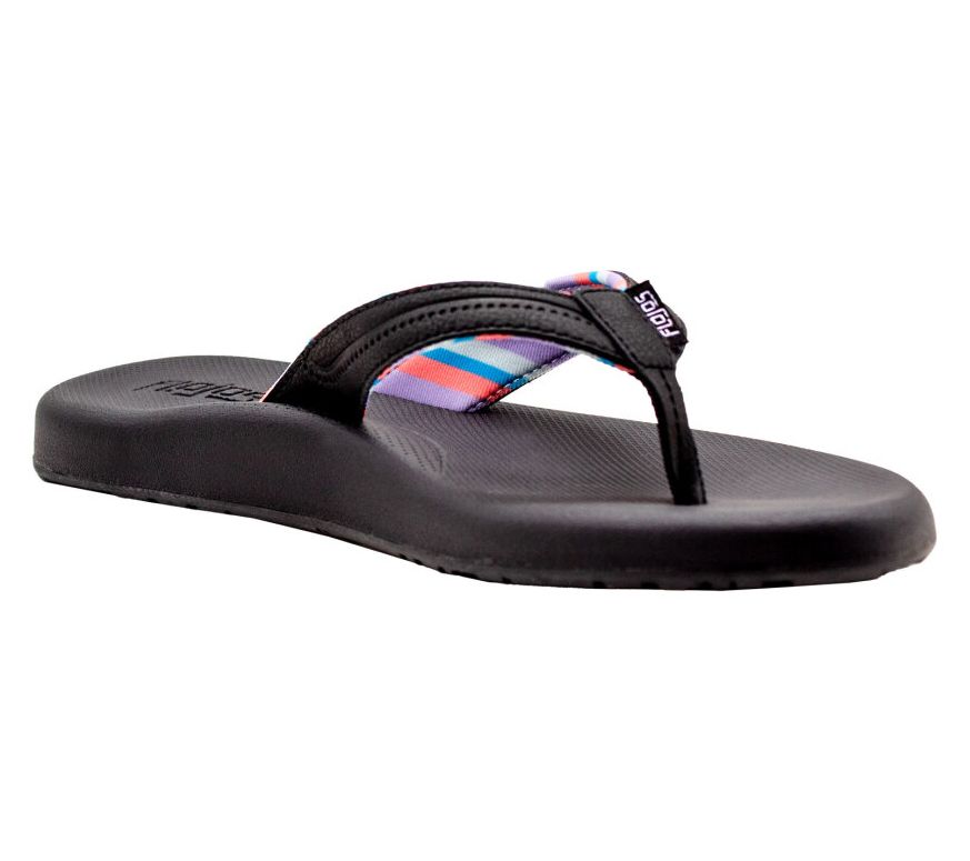 Whether heading to the beach or strolling at a summer festival, these thong sandals bring effortless comfort and easygoing vibes to every sunny adventure. The debossed faux leather upper and striped liner add a fun accent, while the slip-on design makes them an easy pick for warm-weather outings. From Flojos.