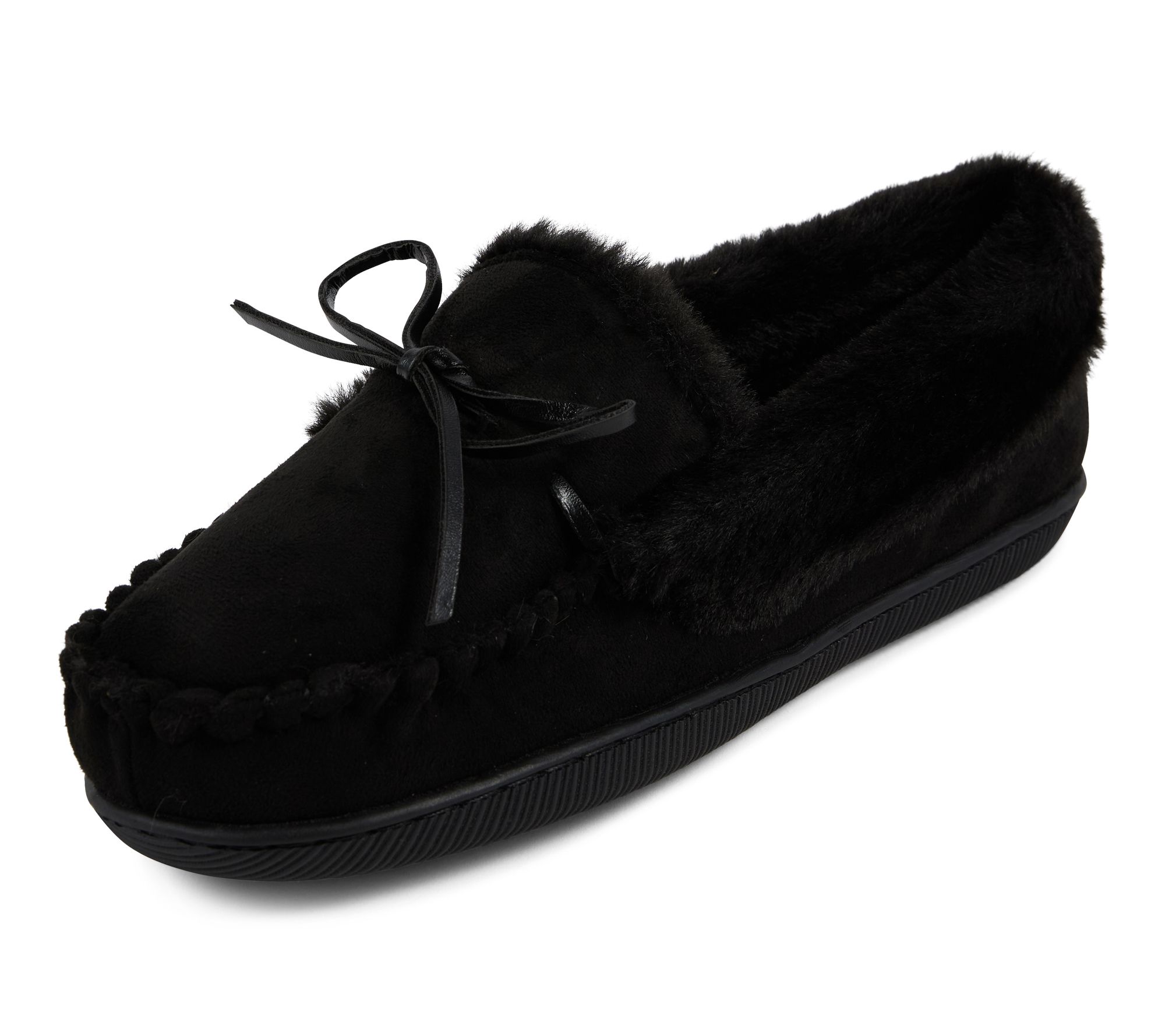 Whether you're winding down after a busy day or enjoying a cozy morning at home, these moccasin slippers surround your feet in plush comfort with their soft microsuede design and cushioned feel. Slip them on to keep toes warm and supported as you lounge, read, or sip your favorite beverage. From Floopi.
