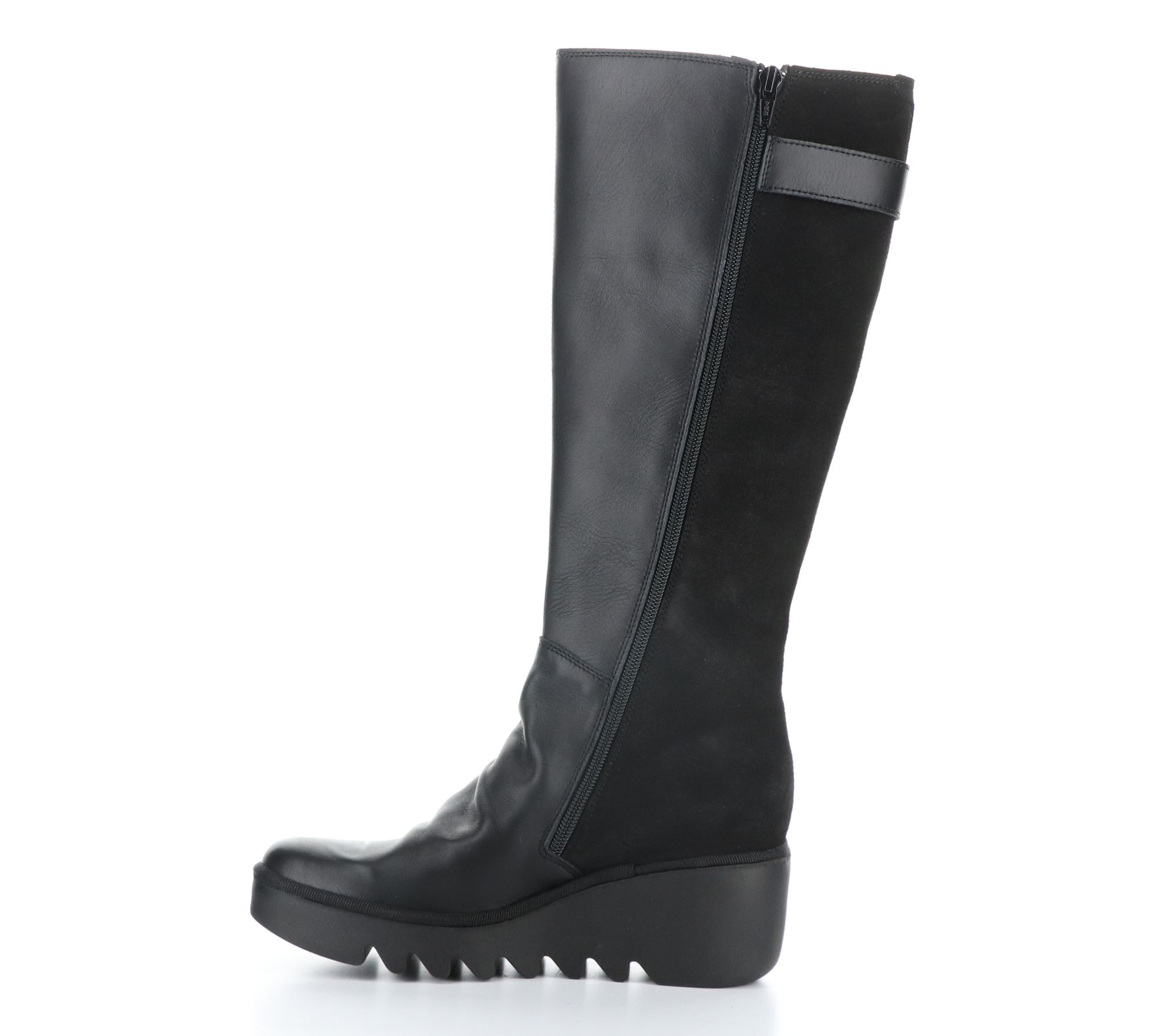 Befy -- Fly London's leather tall shaft wedge boot -- is your go-to for stylish comfort this fall and winter. Featuring a unique serrated look on the lightweight, flexible wedge heel sole, these boots are easy to slip on and off with a side zipper. From Fly London.