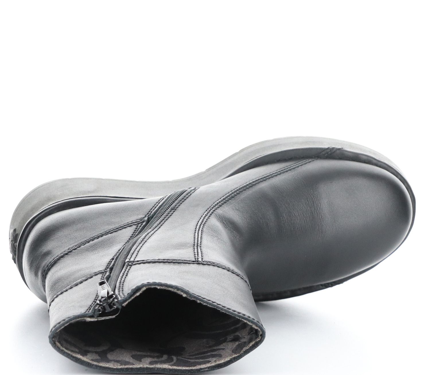 • Side zip closure, rounded toe