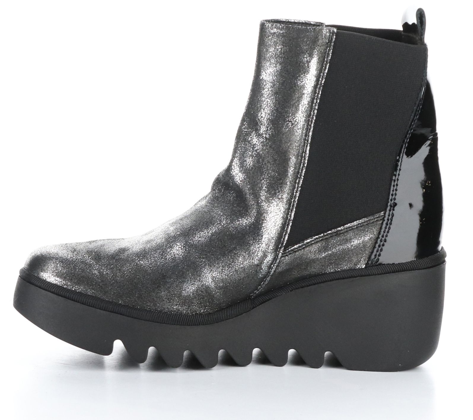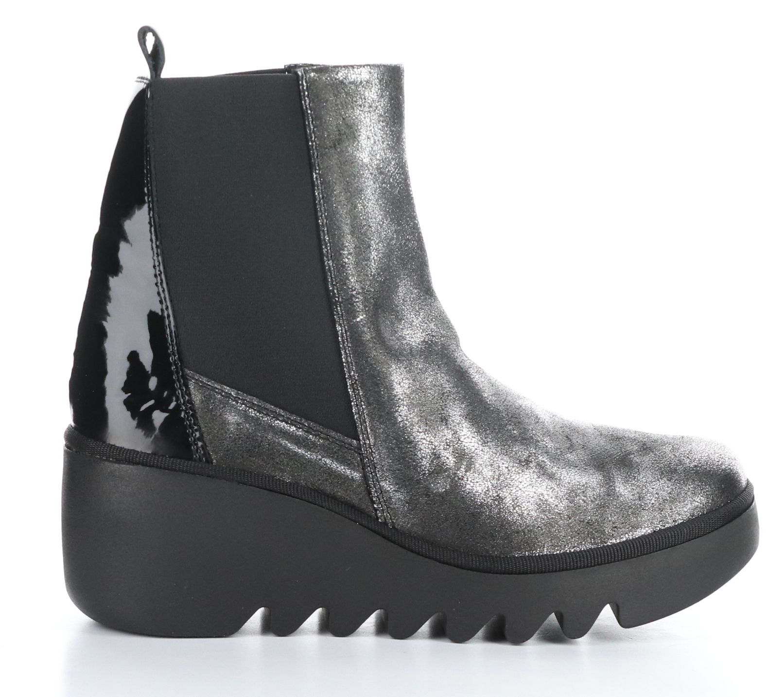 Step out in fashion-forward comfort with this metallic wedge-heel boot that delivers a flexible fit for effortless striding on the street. From Fly London.