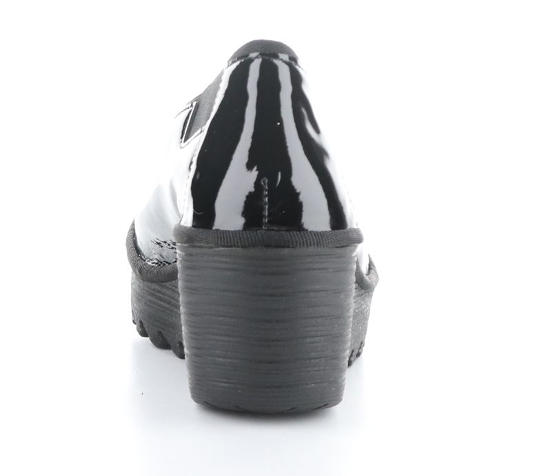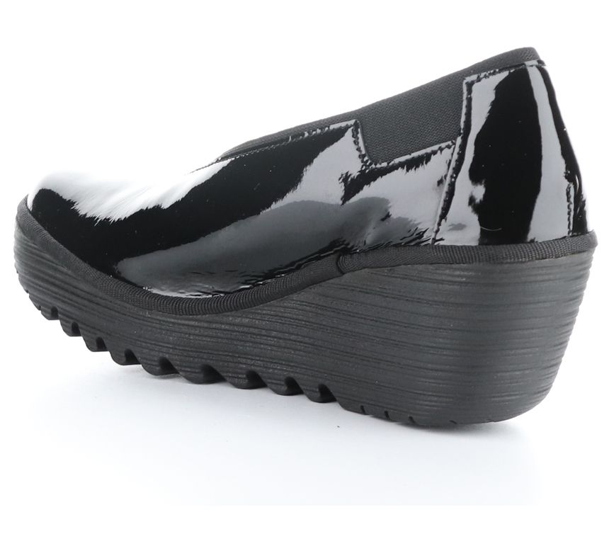 Bring a little shine to your daily routine with the Yoza, a glossy patent leather wedge that adds polish to office attire or elevates the look of your favorite casual jeans. From Fly London.
