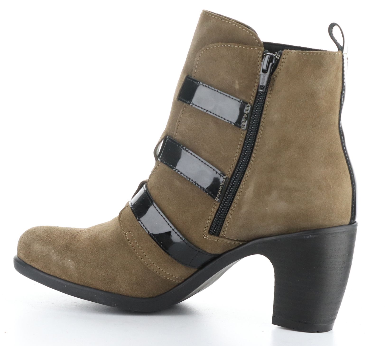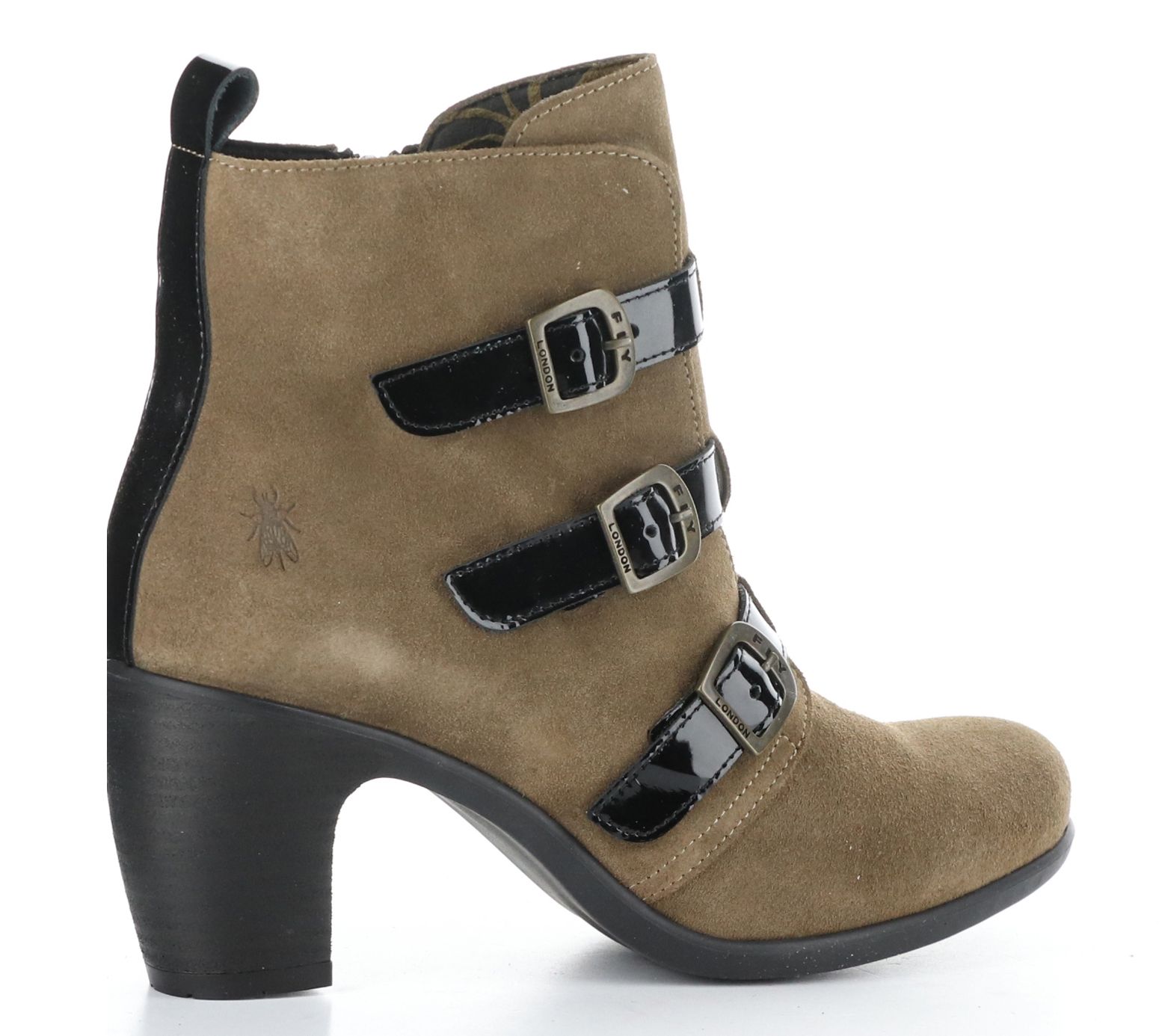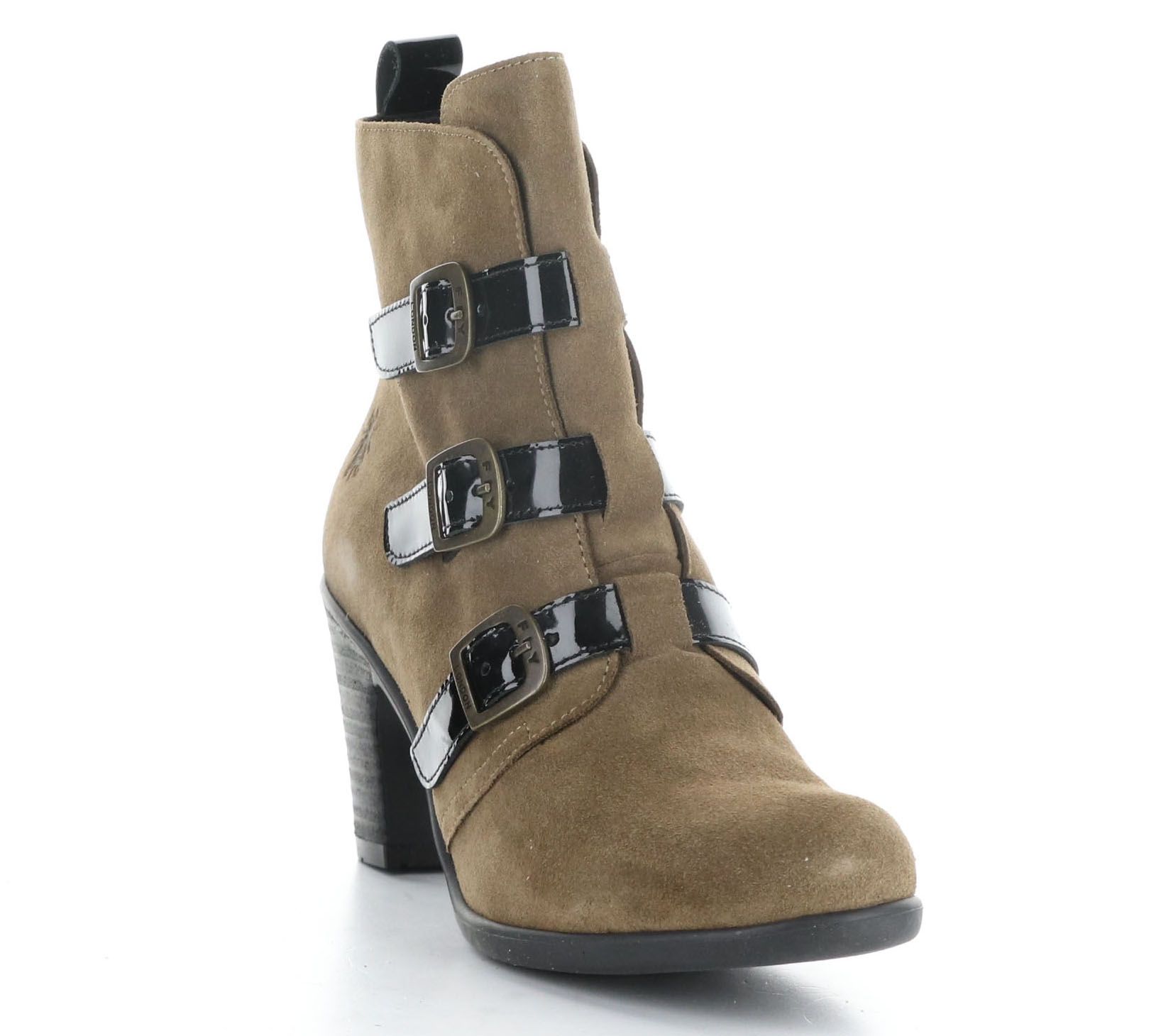 Finish your look with the elegant and edgy appeal of these ankle boots featuring convenient side-zip closures and a trio of decorative buckled straps. From Fly London.