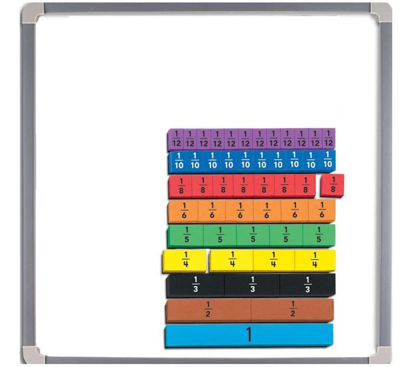 • Includes magnetic whiteboard and 51 color-coded, proportional foam magnetic pieces showing fractions in whole, halves, thirds, fourths, fifths, sixths, eighths, tenths, and twelfths
