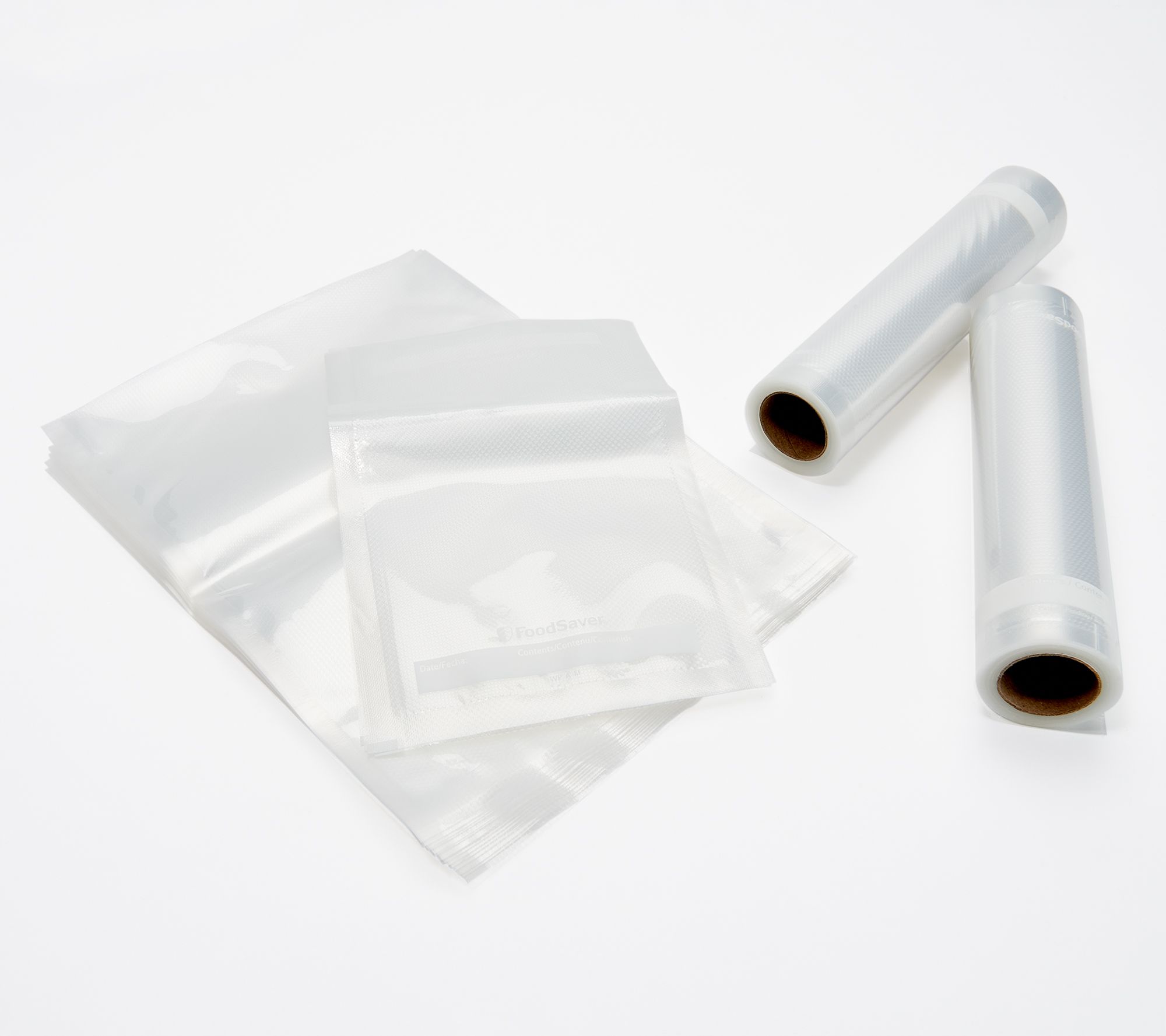 • Includes compact vacuum sealer, two 8"W x 10'L heat seal bag rolls, 15 1-qt bags, and five 1-pint bags