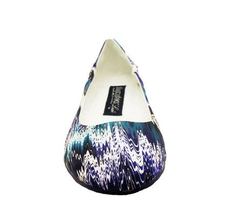 Pedi-cure. These ultra-comfy flats with ultra-chic style are just what the doctor ordered! Featuring an on-trend tie-dye print, these foldable ballet shoes store beautifully in a satin drawstring Footzybag , so you can instantly trade your painful pumps for fashionable flats. From Footzyfolds.